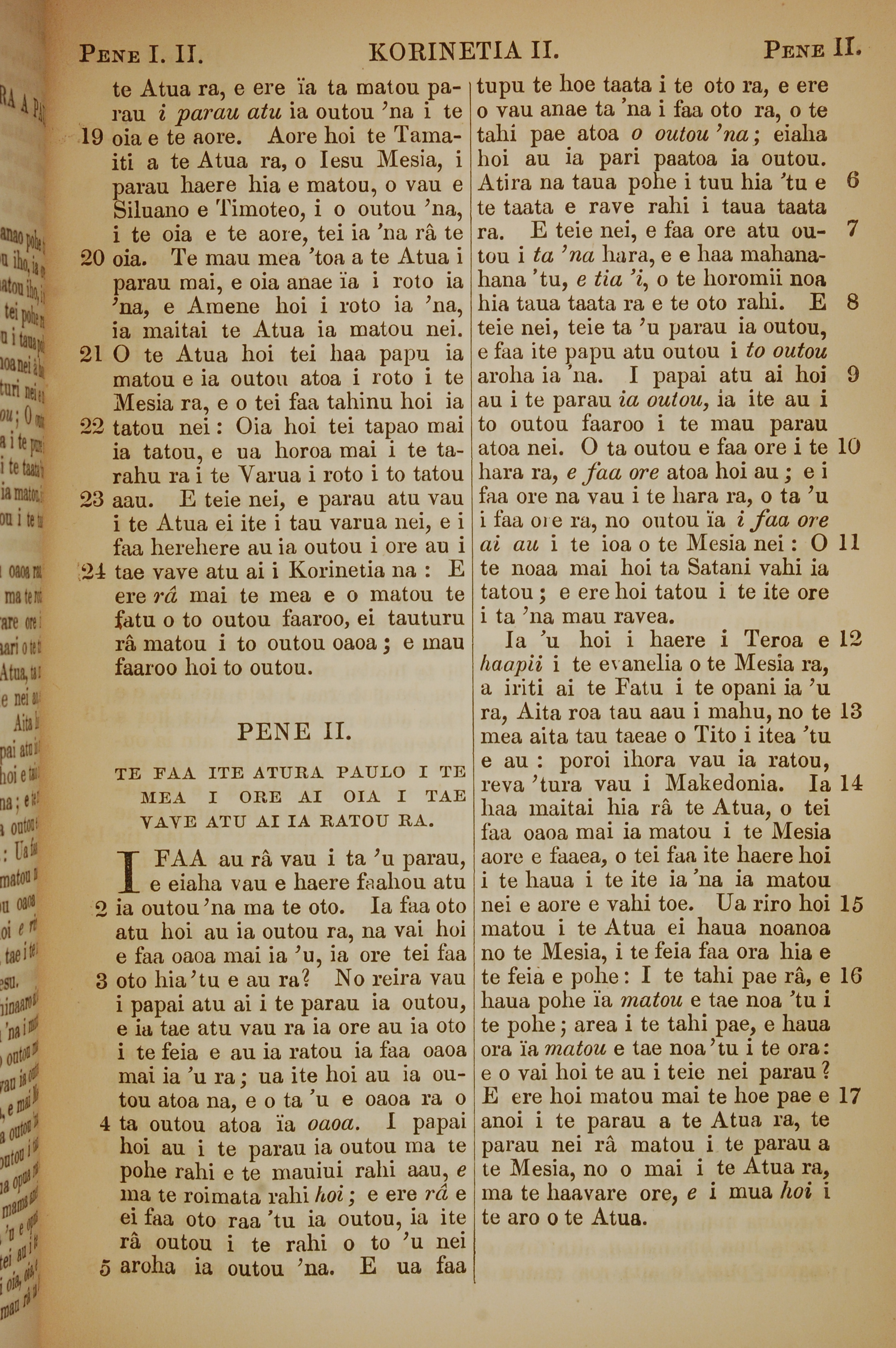 1853年塔希提語新約全書 哥林多後書 1 章 19 節到 2 章 17 節