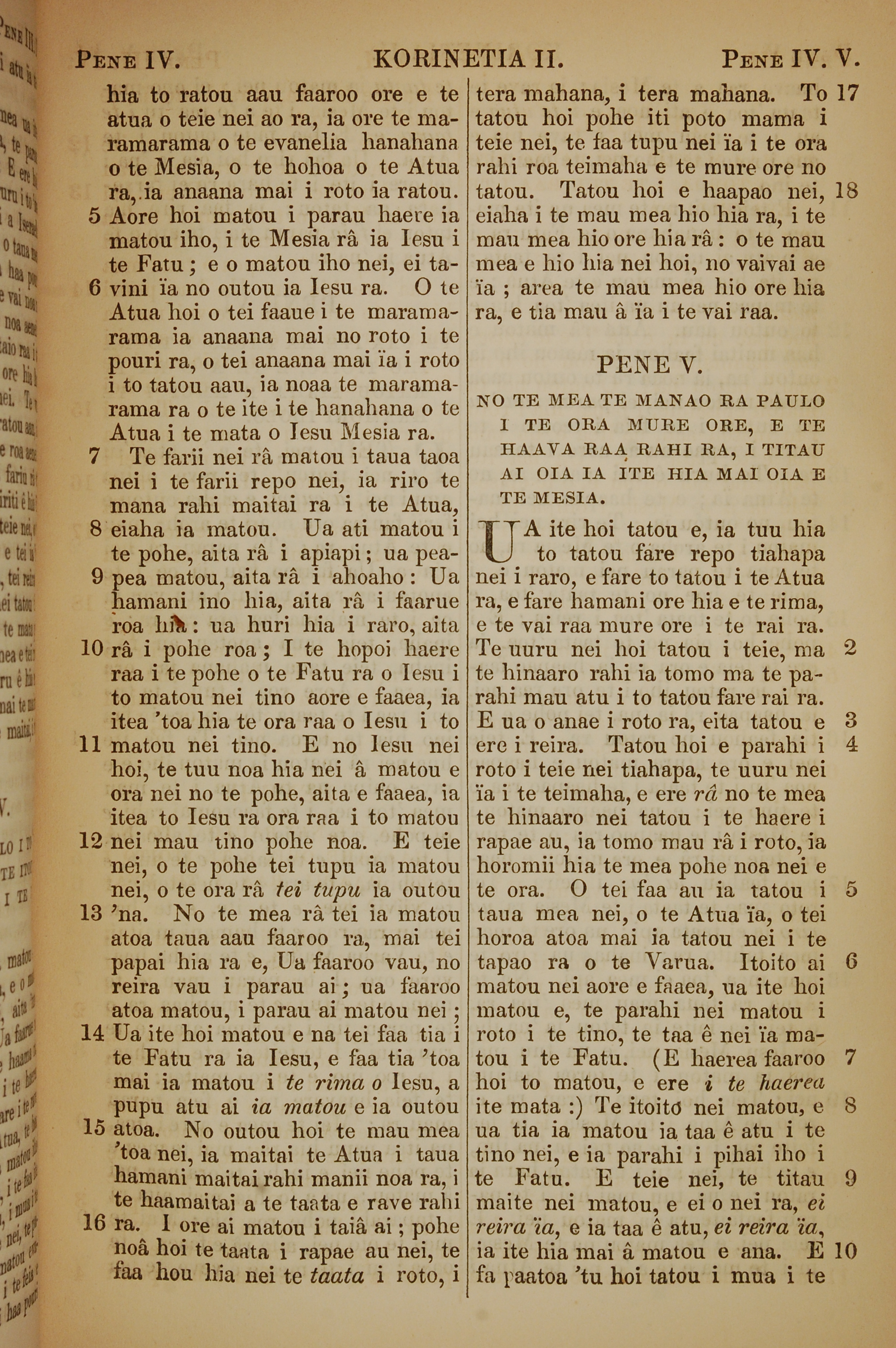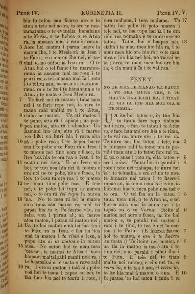 1853年塔希提語新約全書 哥林多後書 4 章 5 節到 5 章 10 節