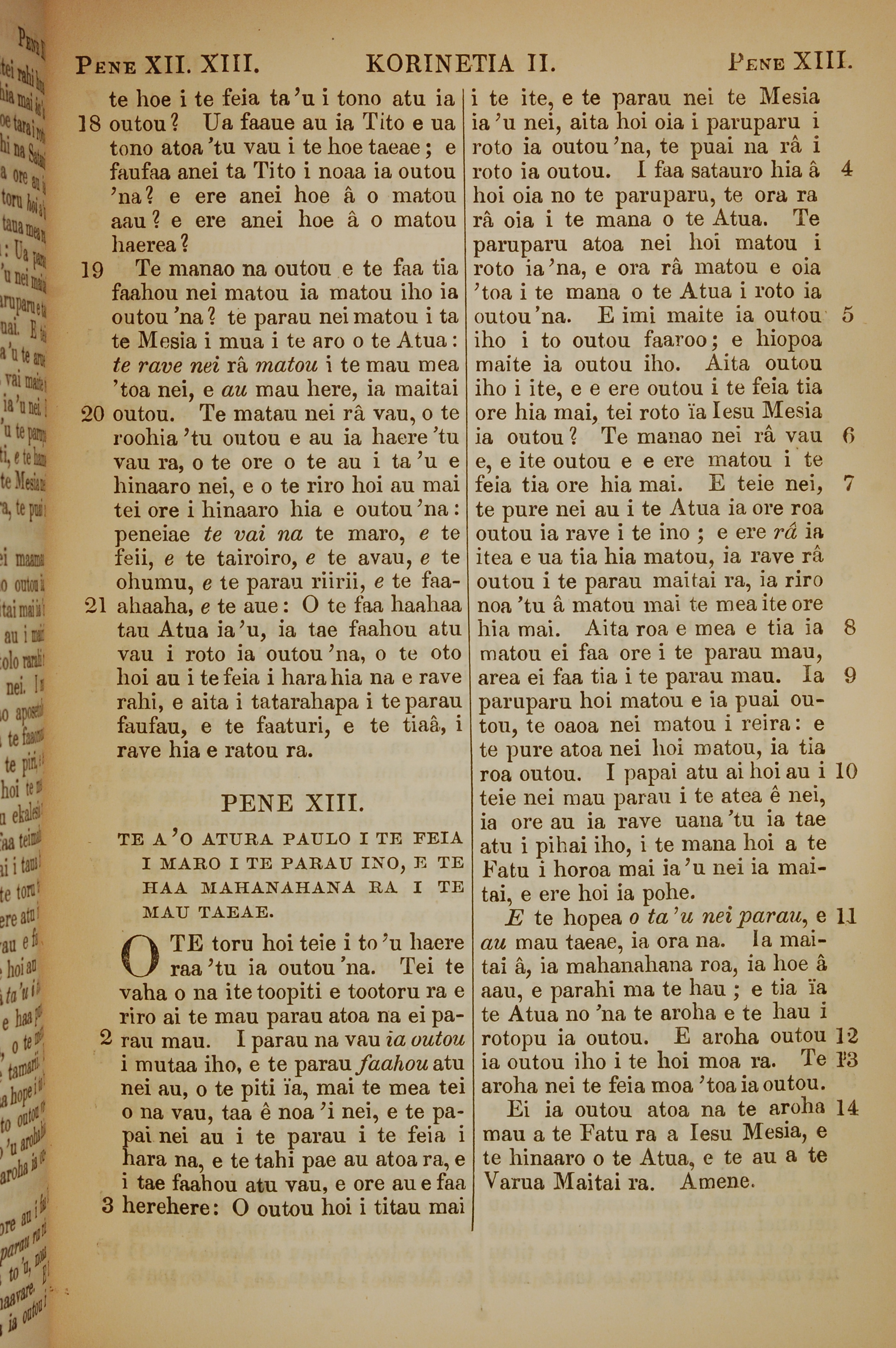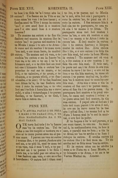 1853年塔希提語新約全書 哥林多後書 12 章 18 節到 13 章 14 節
