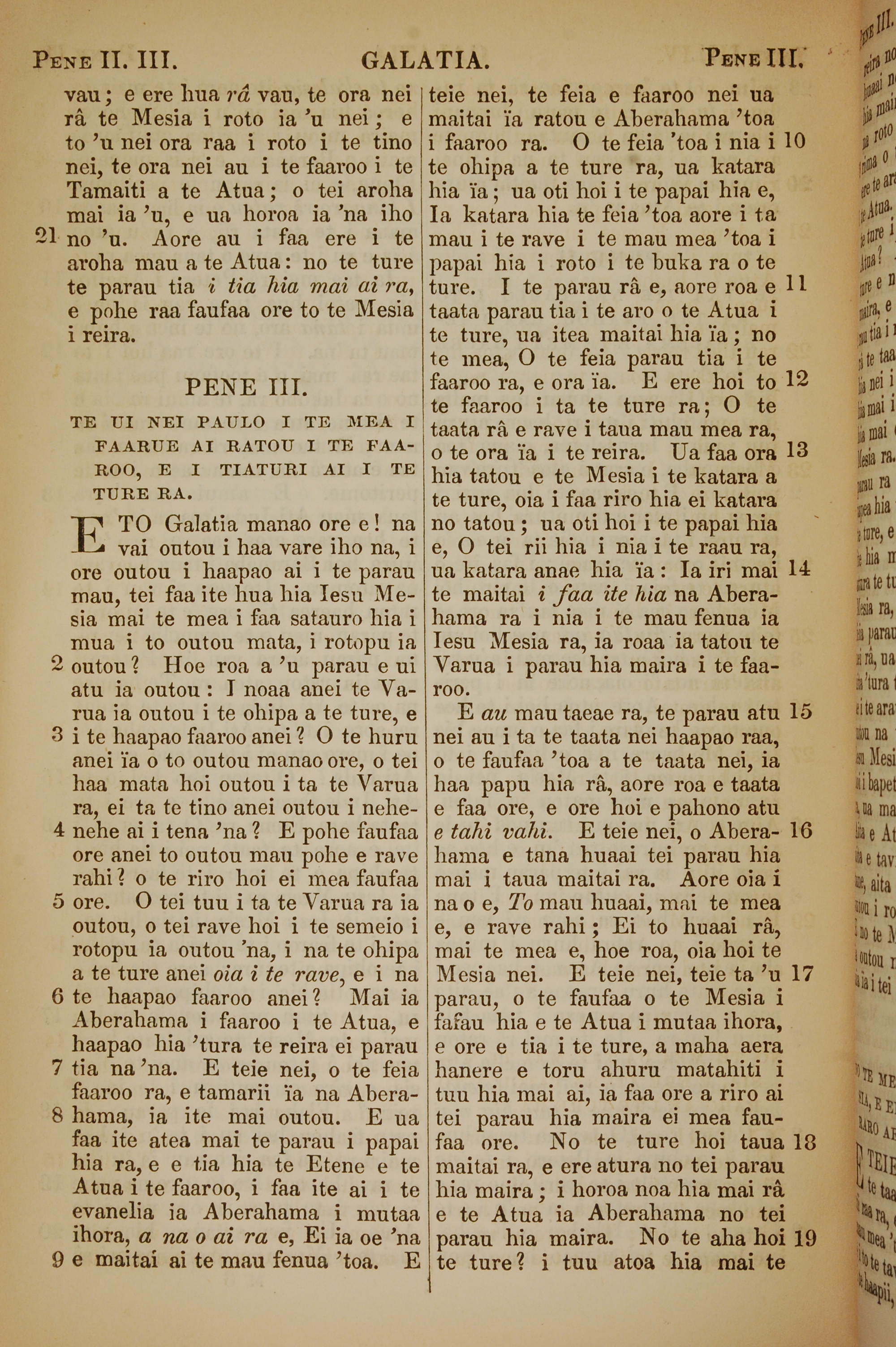1853年塔希提語新約全書 加拉太書 2 章 21 節到 3 章 19 節
