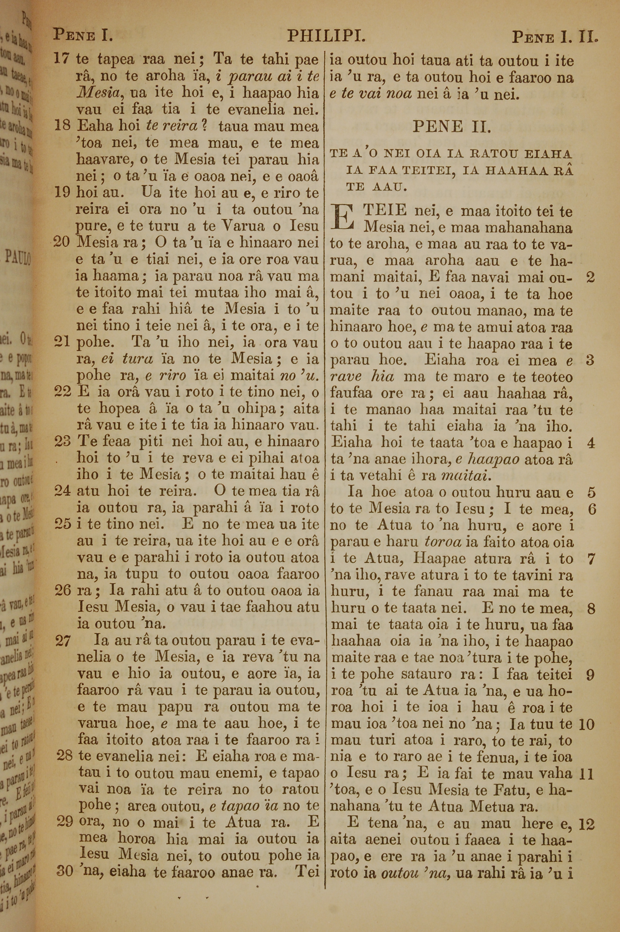 1853年塔希提語新約全書 腓立比書 1 章 17 節到 2 章 12 節