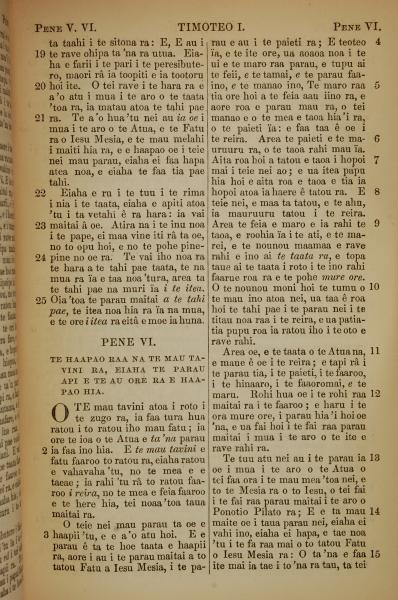 1853年塔希提語新約全書 提摩太前書 5 章 19 節到 6 章 15 節