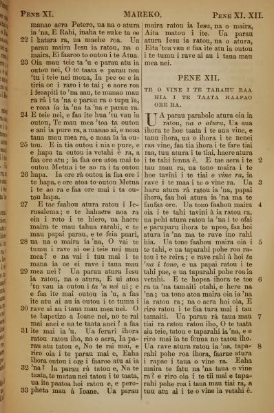 1853年塔希提語新約全書 馬可福音 11 章 22 節到 12 章 9 節