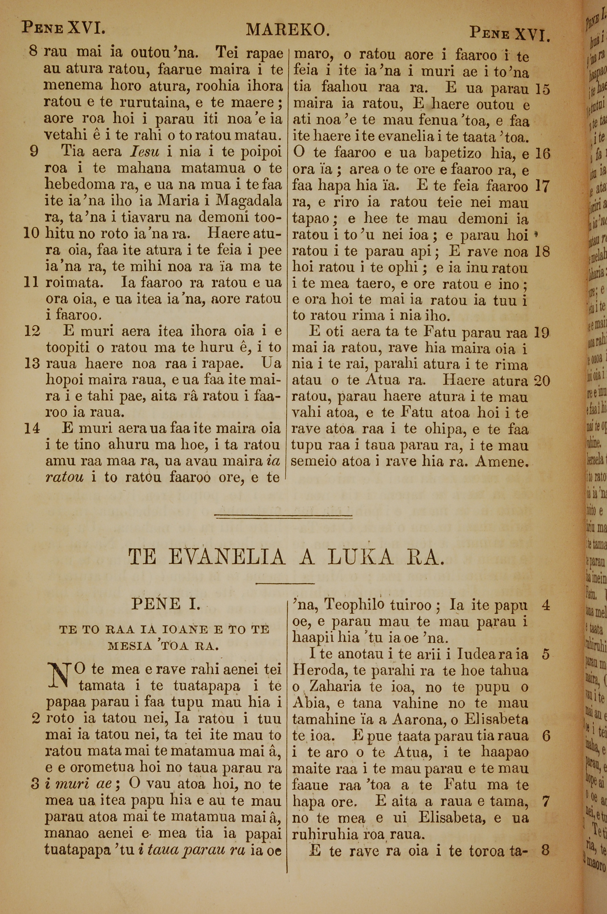 1853年塔希提語新約全書 路加福音 1 章 1 節到 1 章 8 節