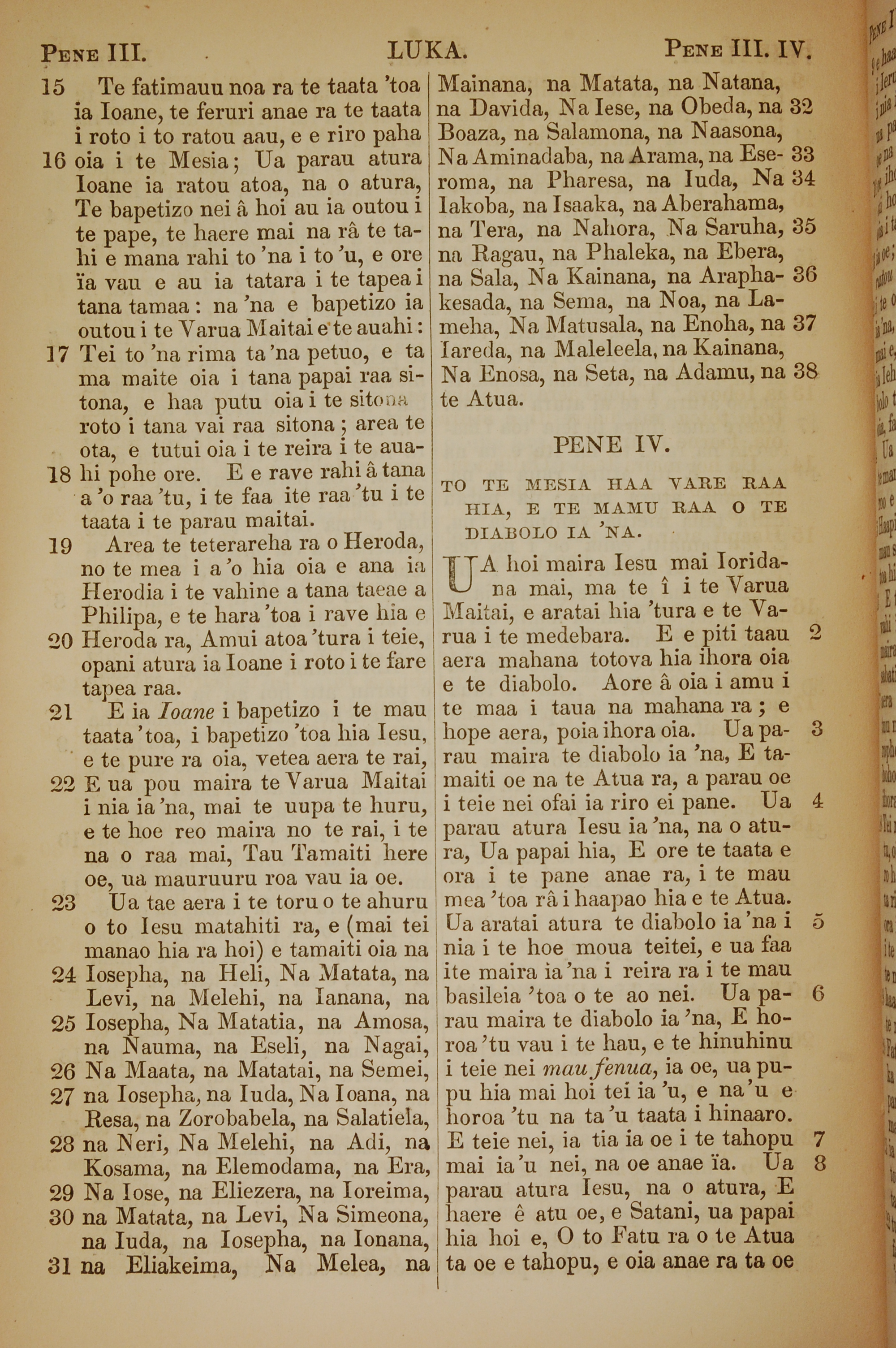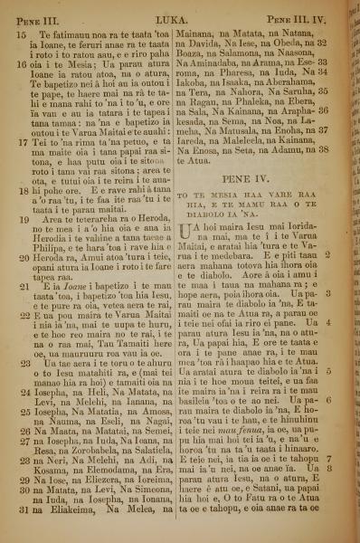 1853年塔希提語新約全書 路加福音 3 章 15 節到 4 章 8 節
