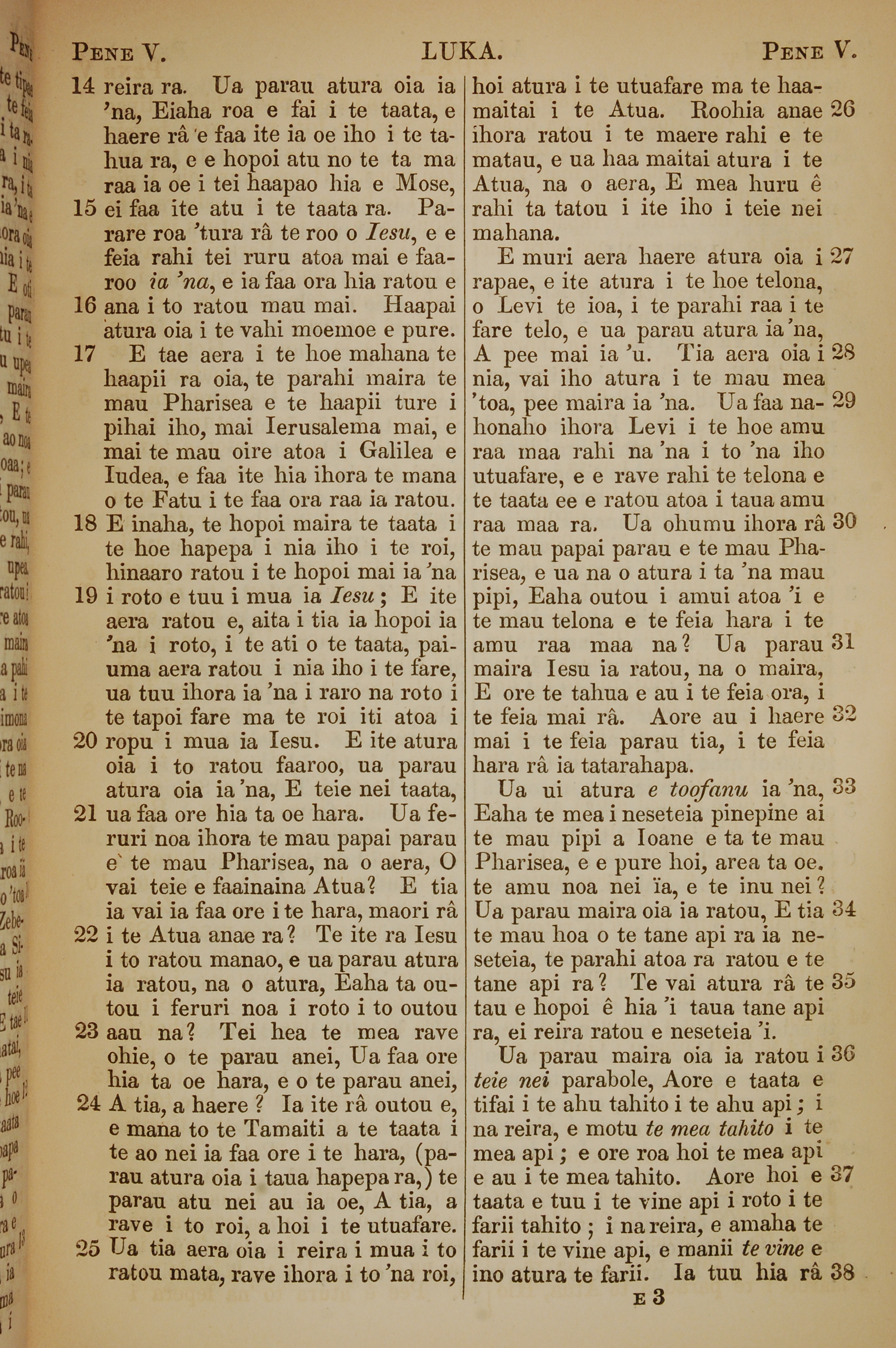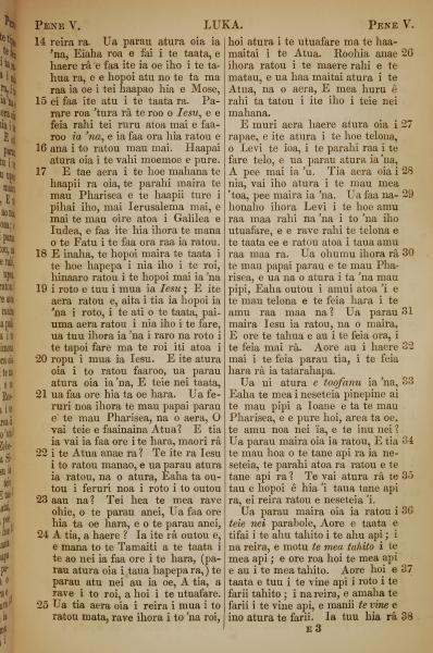 1853年塔希提語新約全書 路加福音 5 章 14 節到 5 章 38 節