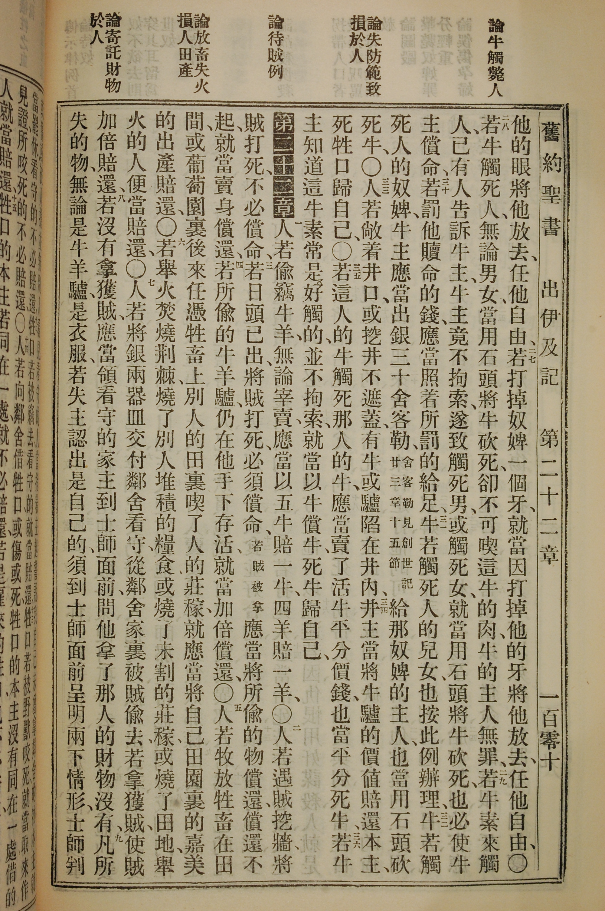 1912年新舊約聖書 出埃及記 21 章 27 節到 22 章 9 節
