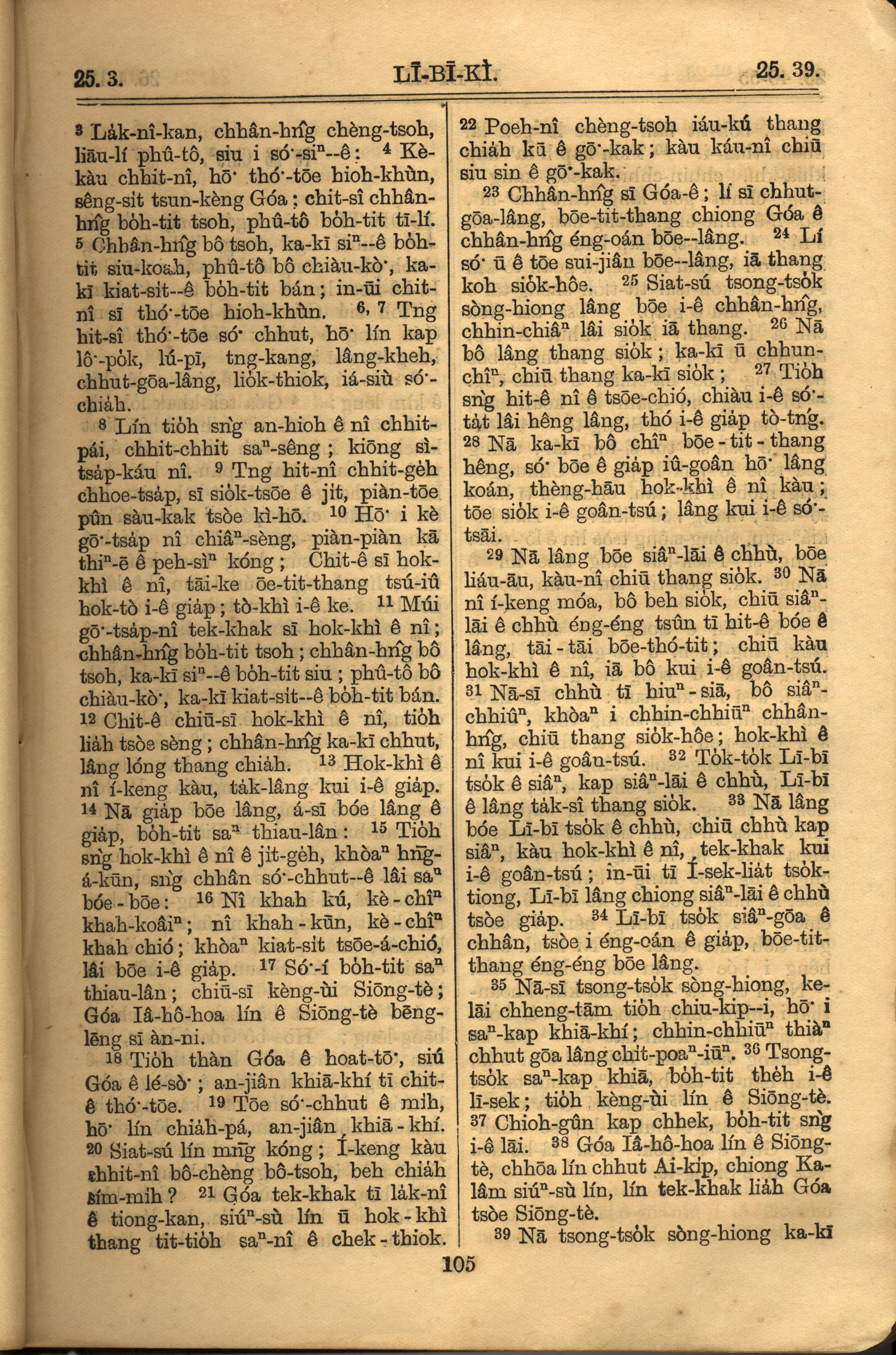 1921年羅馬字舊約全書 利未記 25 章 3 節到 25 章 39 節
