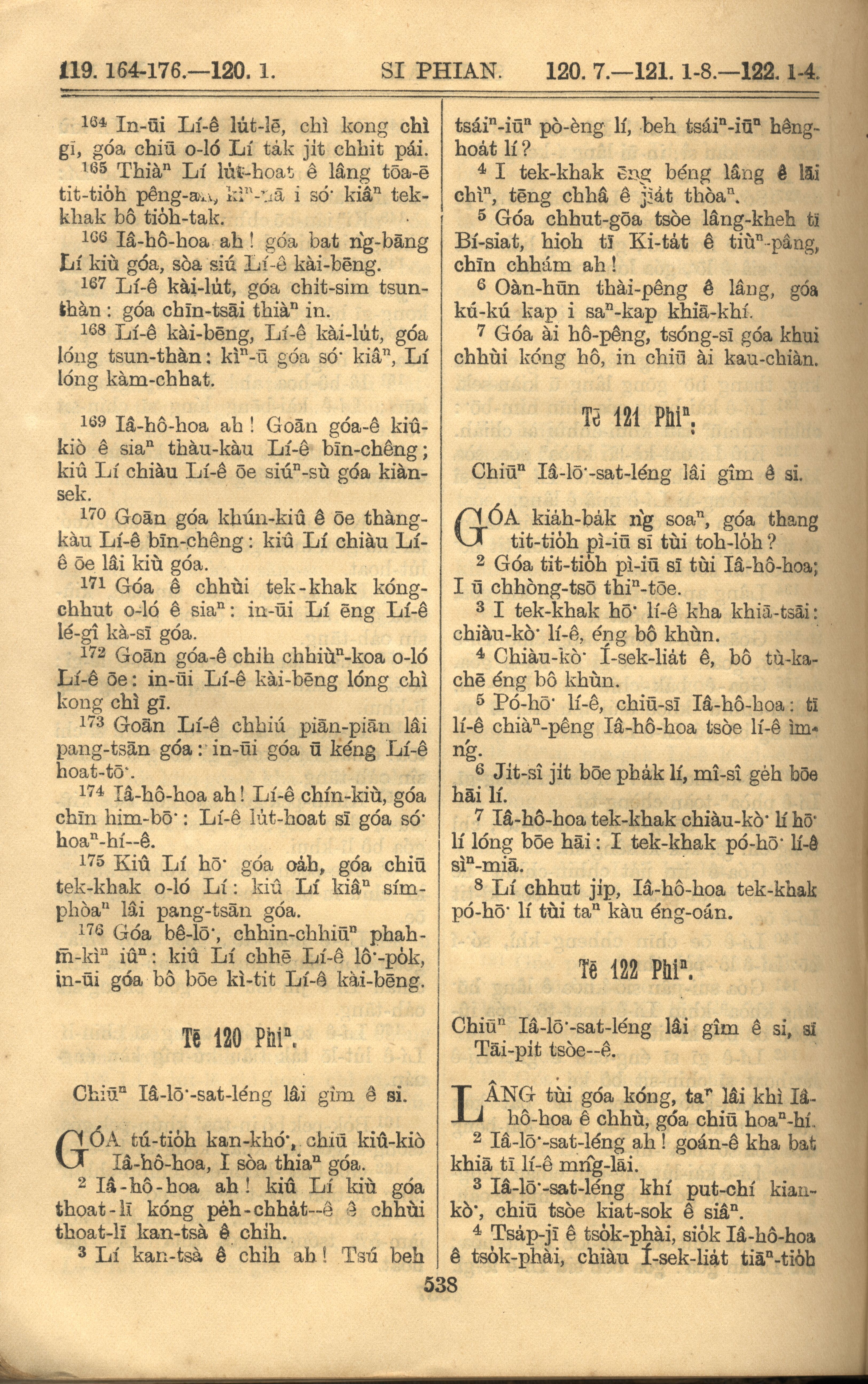 1921年羅馬字舊約全書 詩篇 119 章 164 節到 122 章 4 節