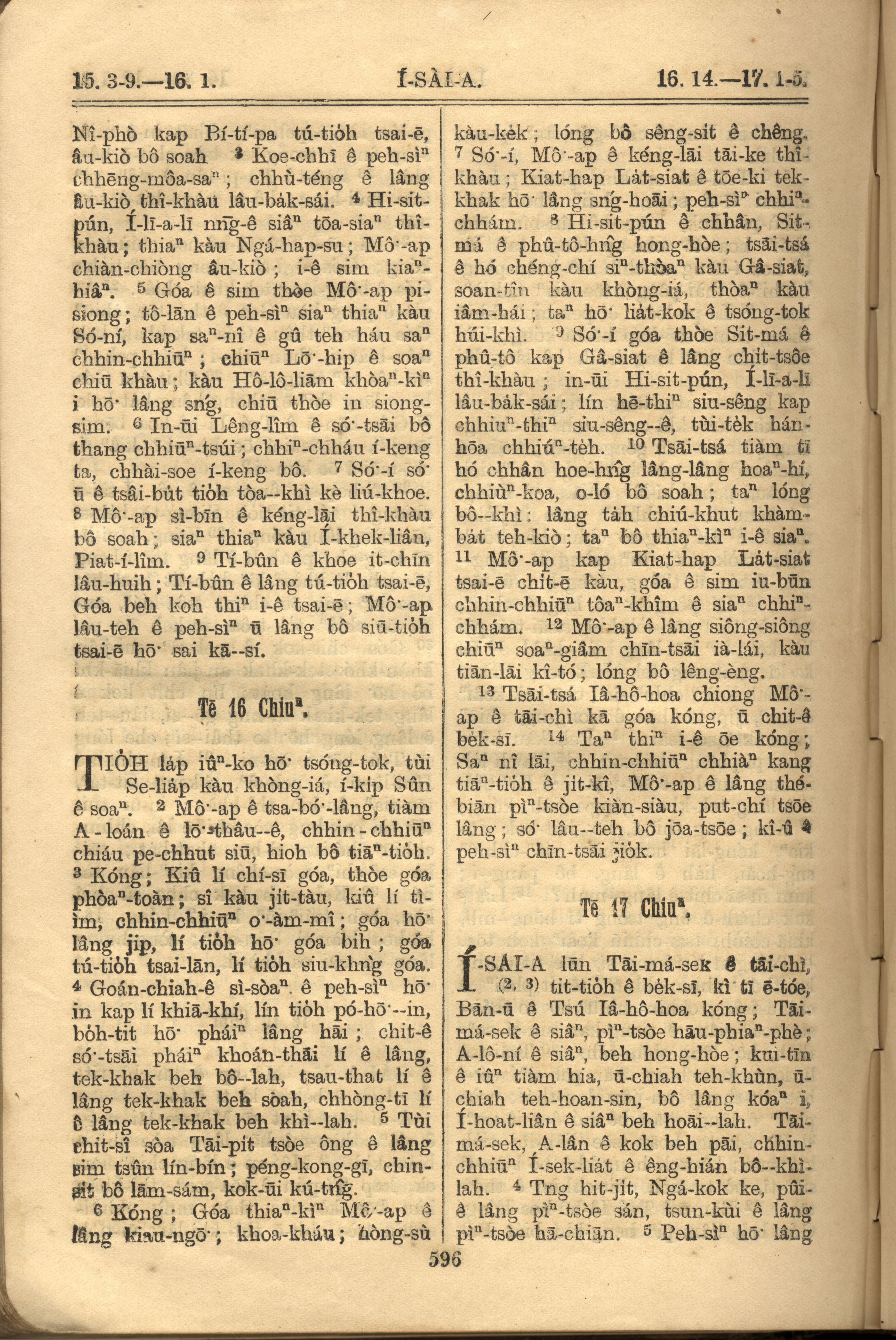 1921年羅馬字舊約全書 以賽亞書 15 章 3 節到 17 章 5 節