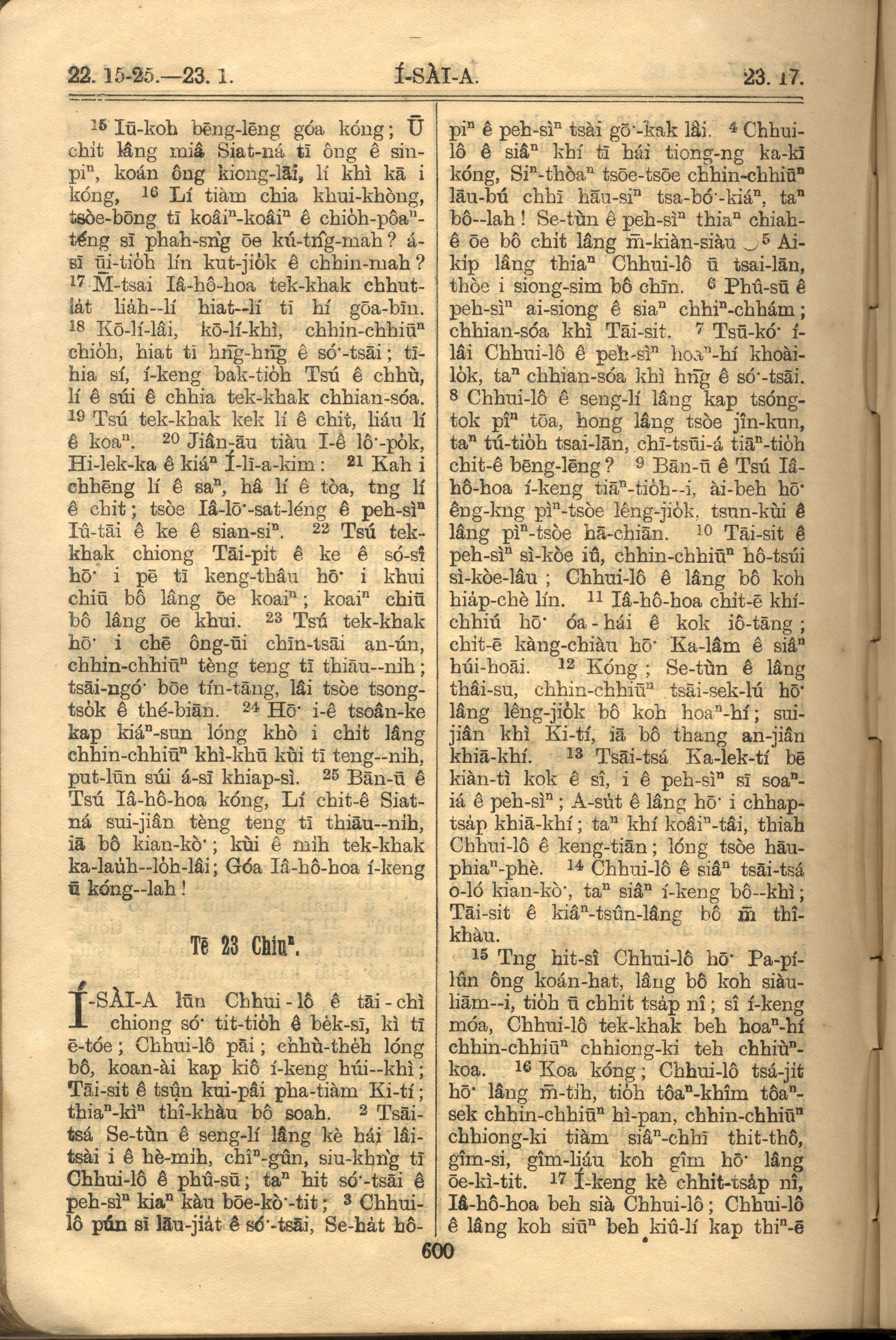 1921年羅馬字舊約全書 以賽亞書 22 章 15 節到 23 章 17 節