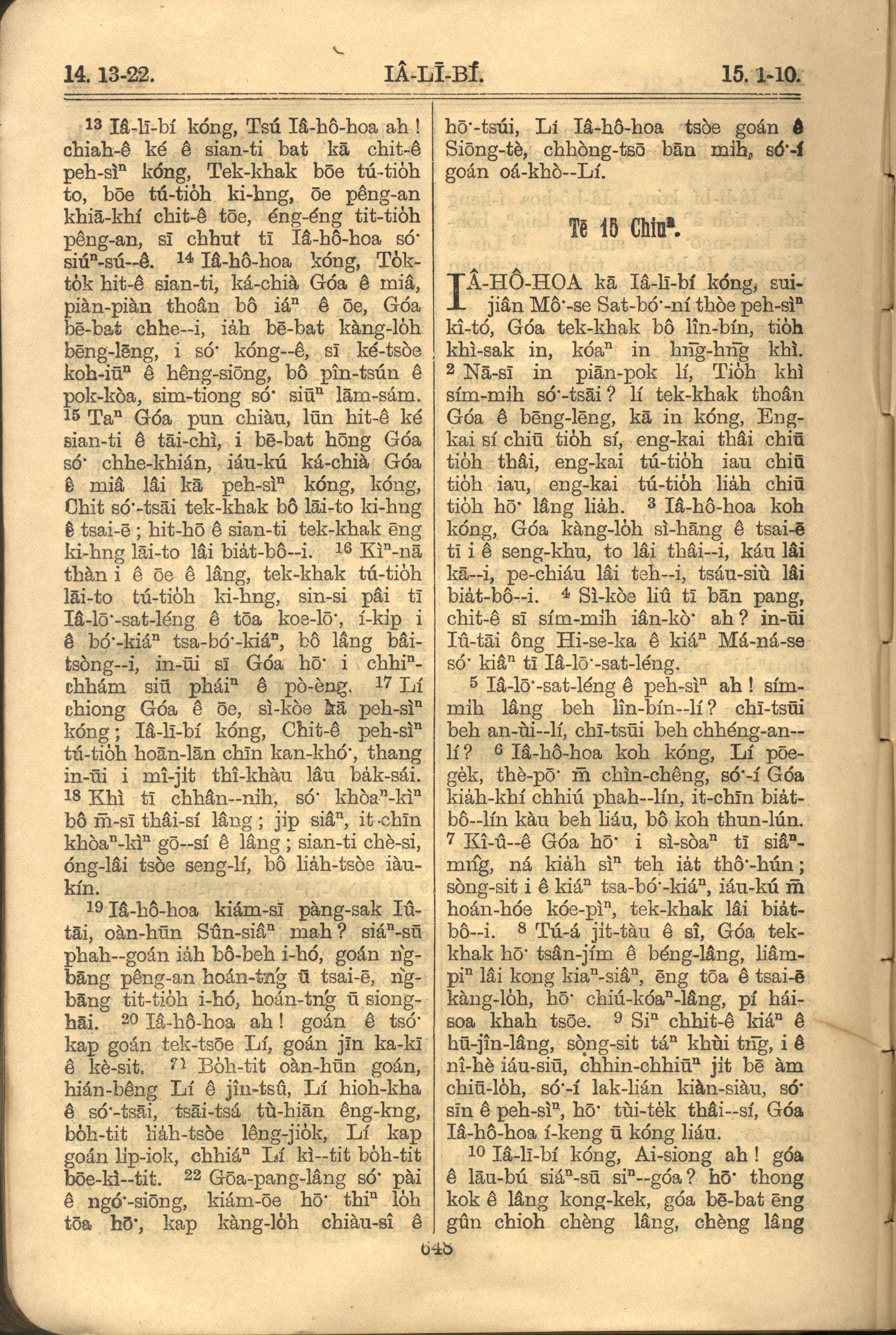 1921年羅馬字舊約全書 耶利米書 14 章 13 節到 15 章 10 節