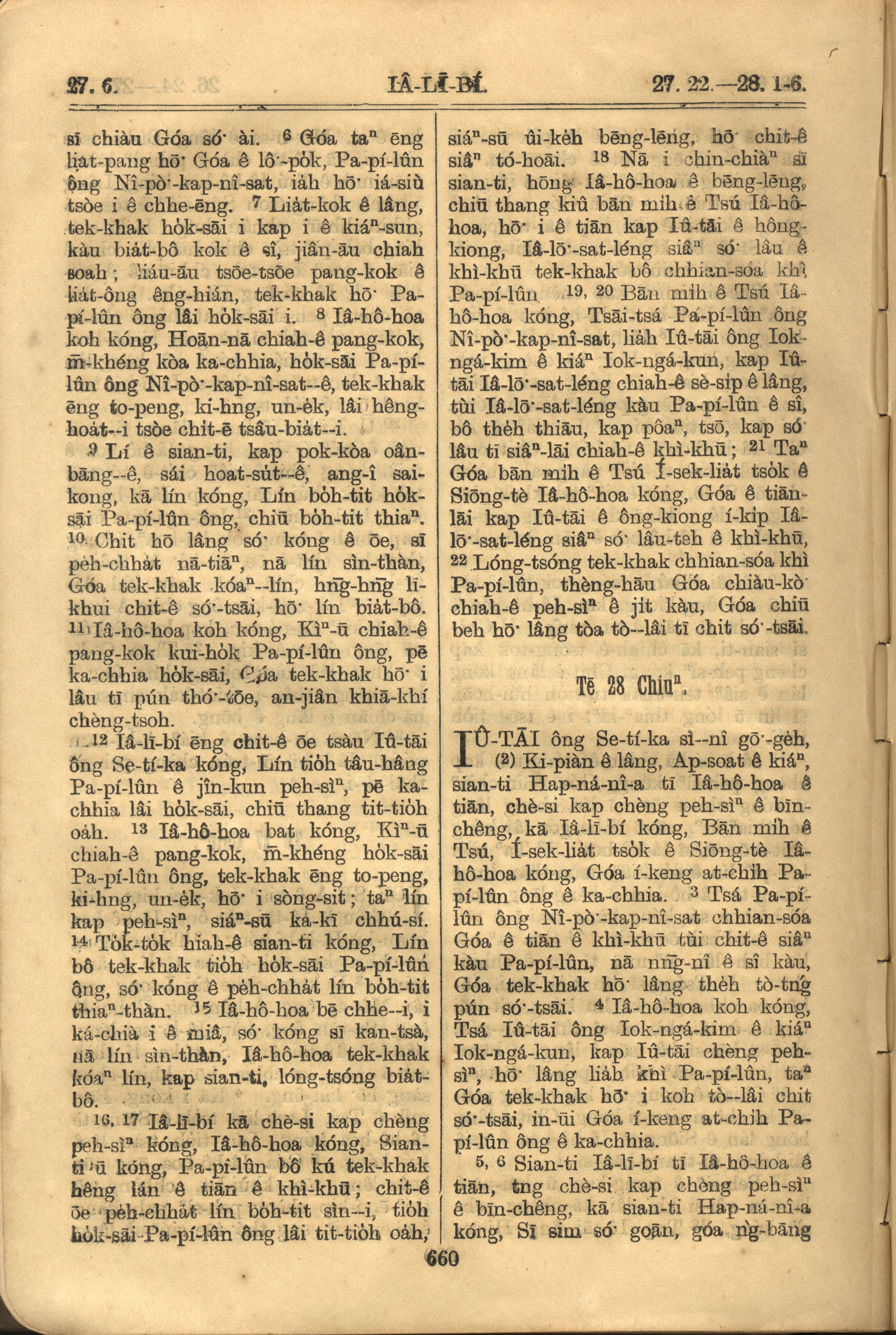 1921年羅馬字舊約全書 耶利米書 27 章 6 節到 28 章 6 節