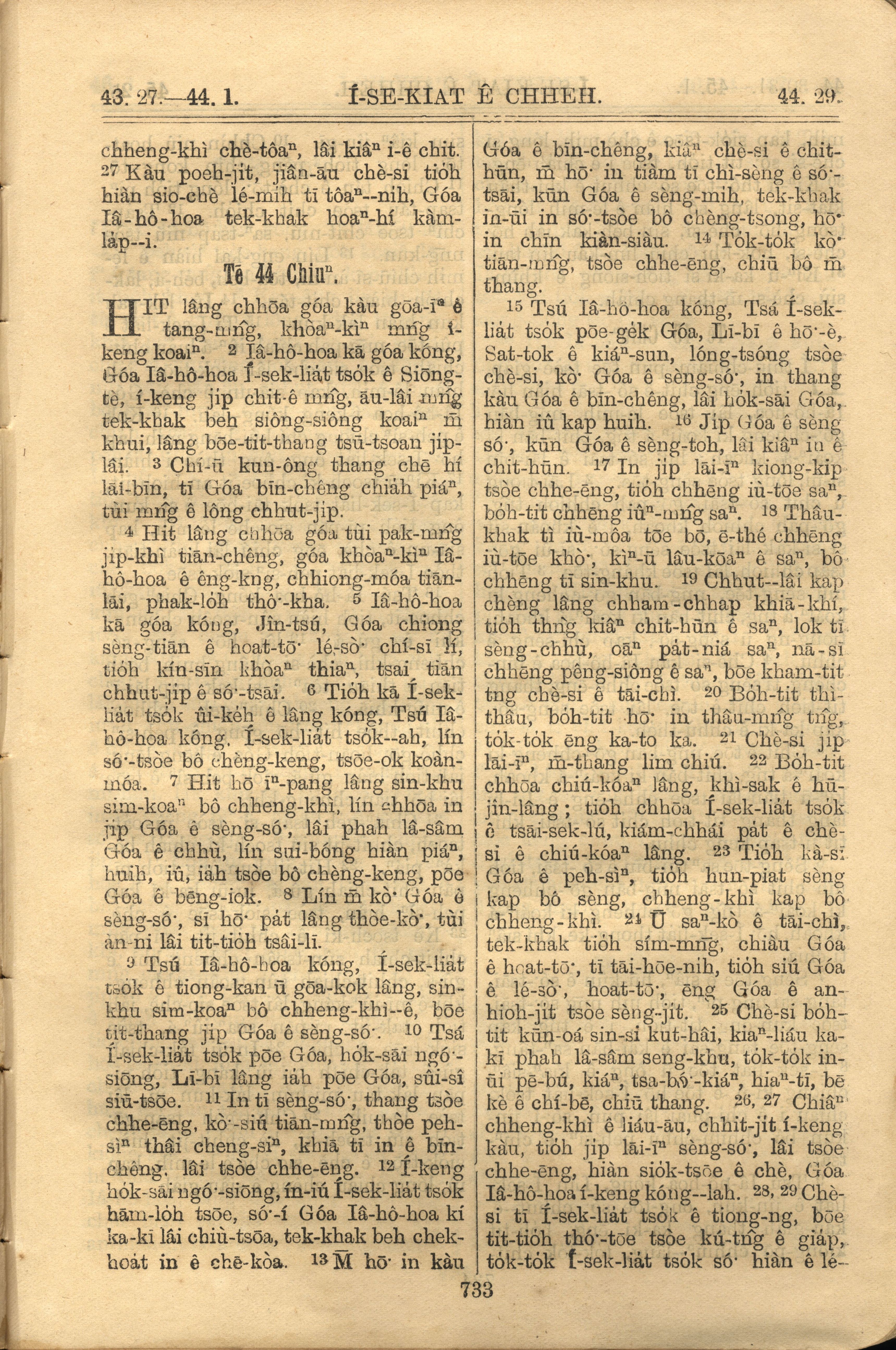 1921年羅馬字舊約全書 以西結書 43 章 27 節到 44 章 29 節
