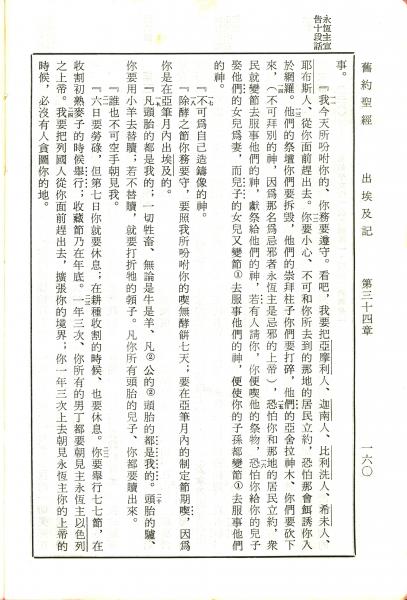1970年新舊約全書(呂振中譯本) 出埃及記 34 章 11 節到 34 章 24 節