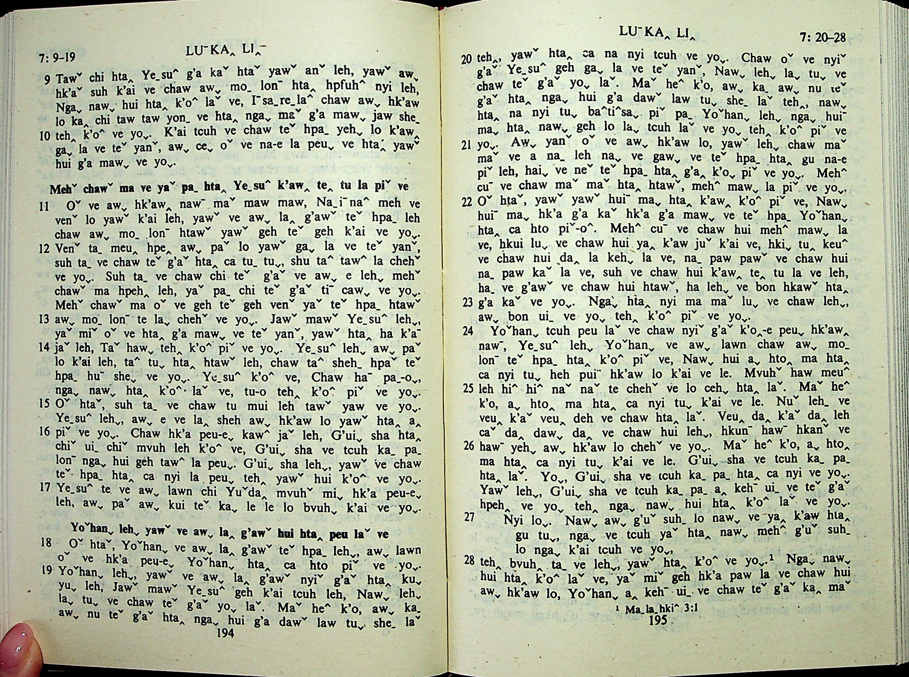 1985年拉祜文新約全書 路加福音 7 章 9 節到 7 章 28 節