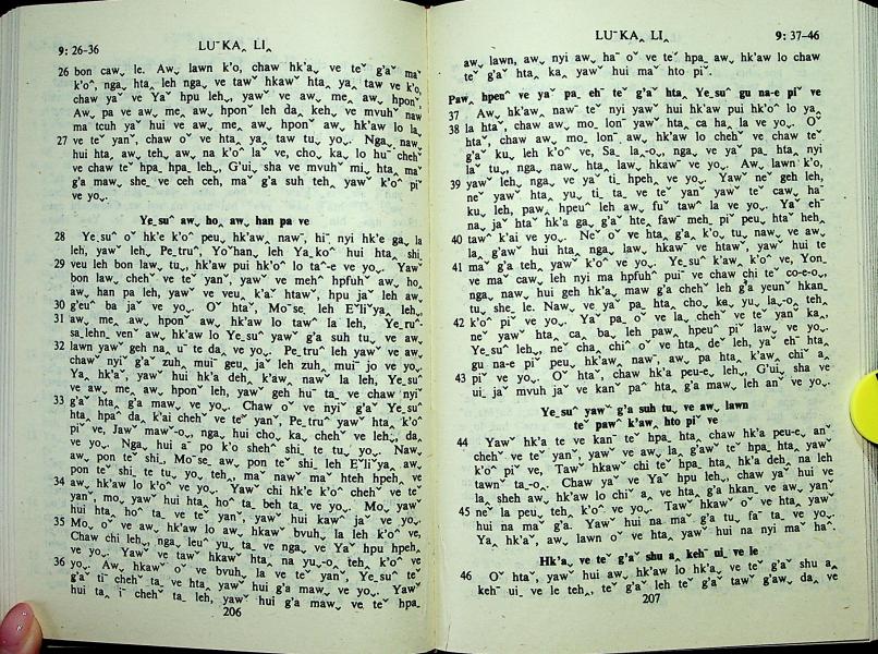 1985年拉祜文新約全書 路加福音 9 章 26 節到 9 章 46 節