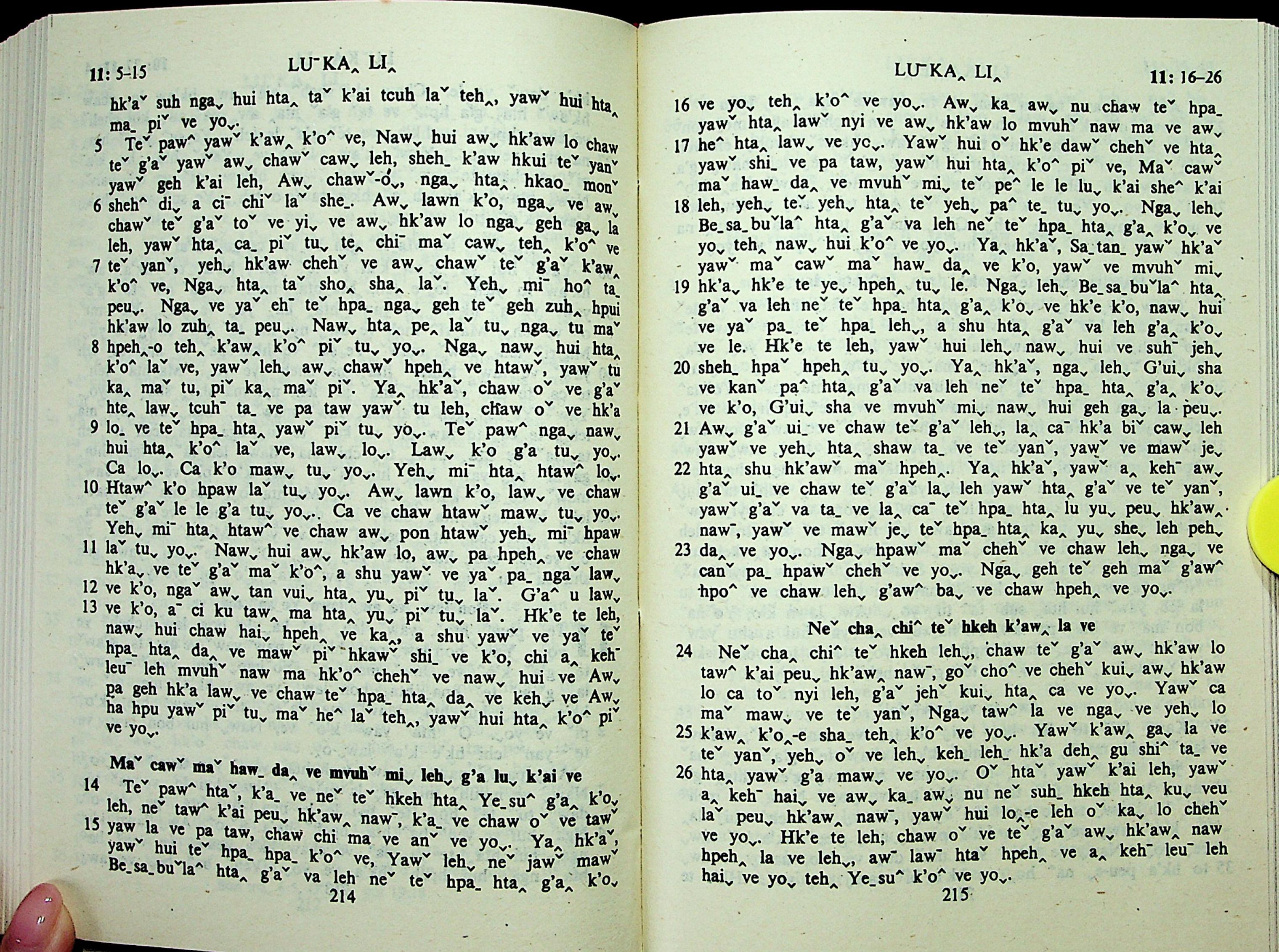 1985年拉祜文新約全書 路加福音 11 章 5 節到 11 章 26 節