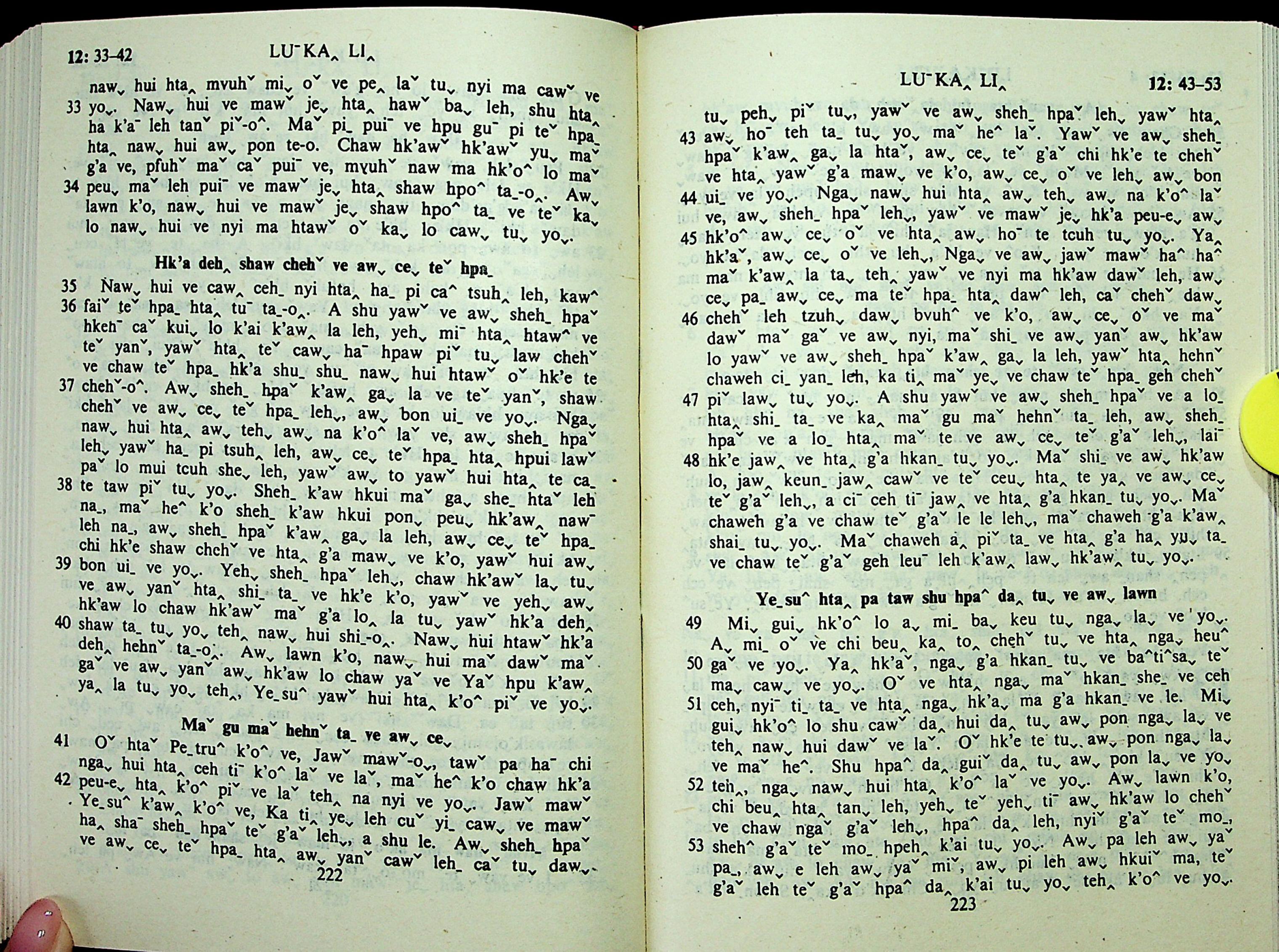 1985年拉祜文新約全書 路加福音 12 章 33 節到 12 章 53 節