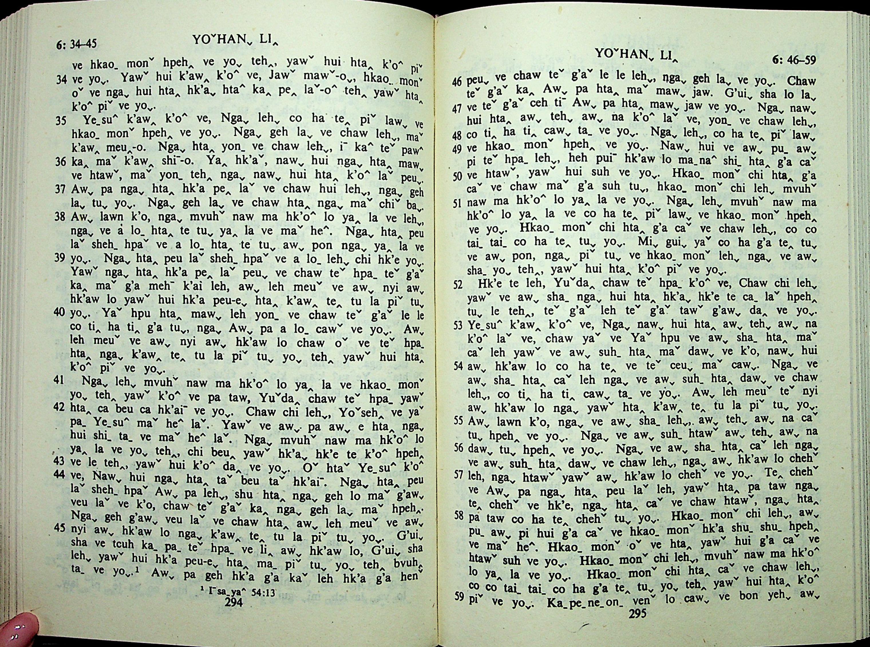 1985年拉祜文新約全書 約翰福音 6 章 34 節到 6 章 59 節