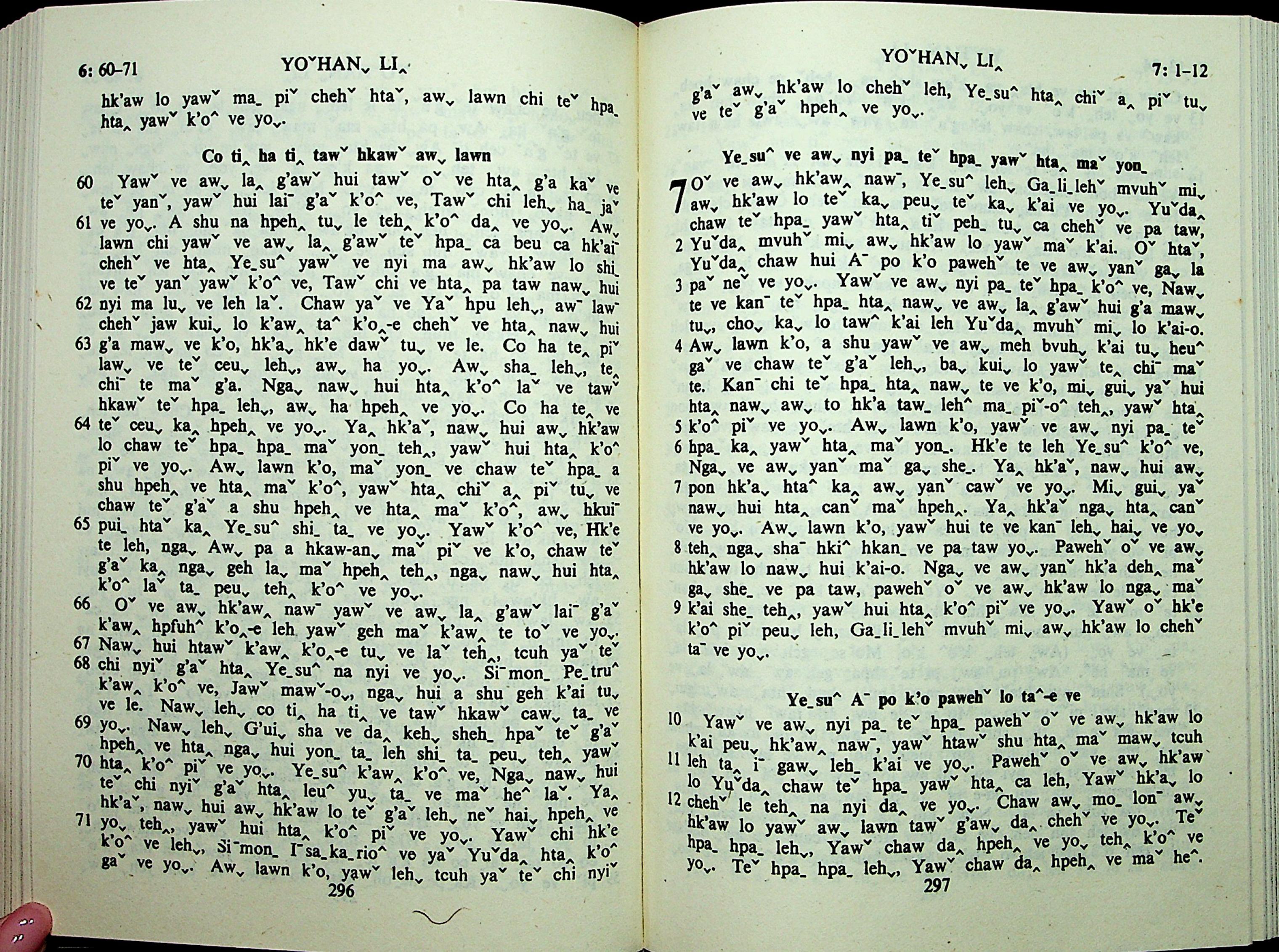 1985年拉祜文新約全書 約翰福音 6 章 60 節到 7 章 12 節