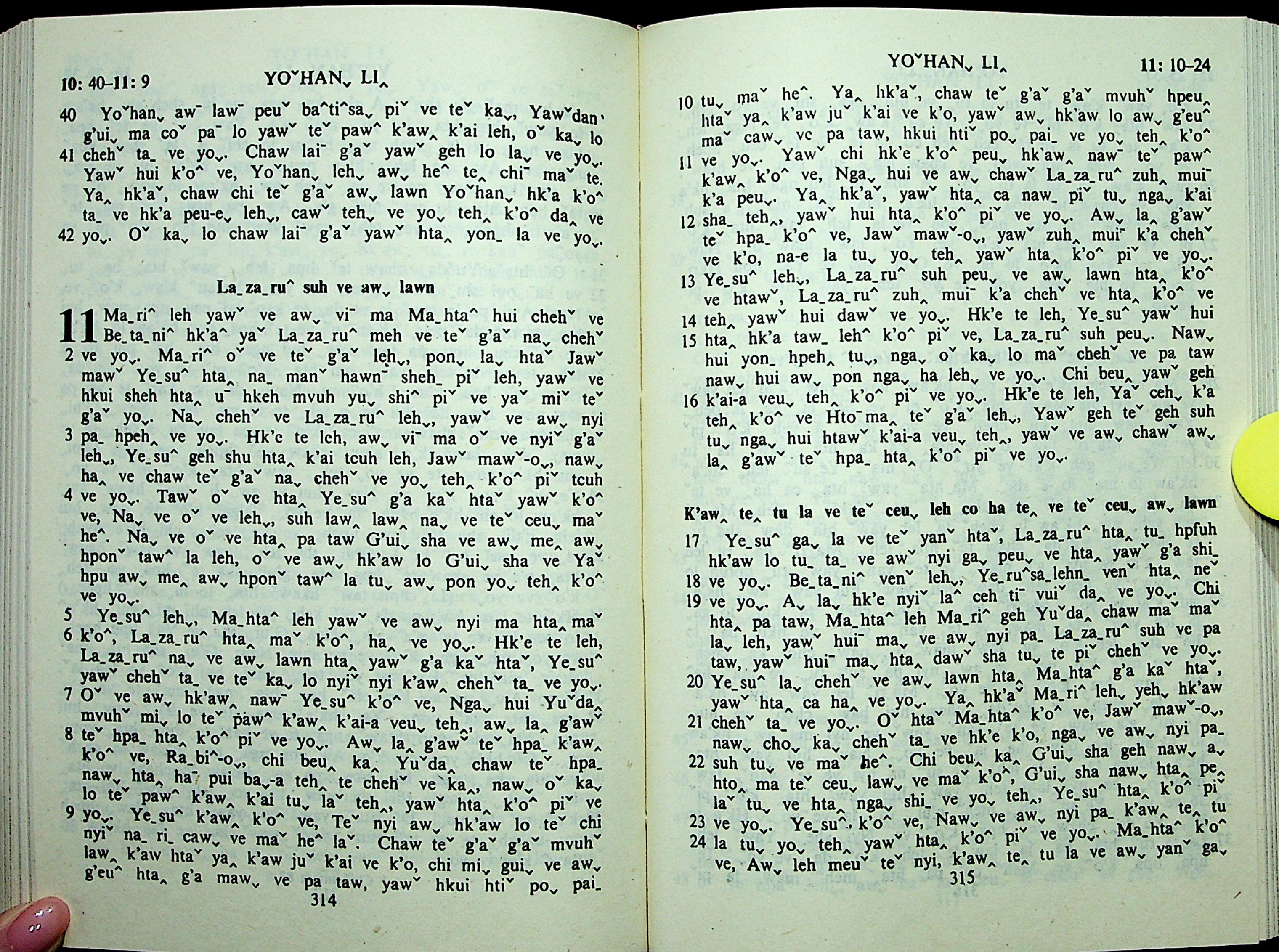 1985年拉祜文新約全書 約翰福音 10 章 40 節到 11 章 24 節