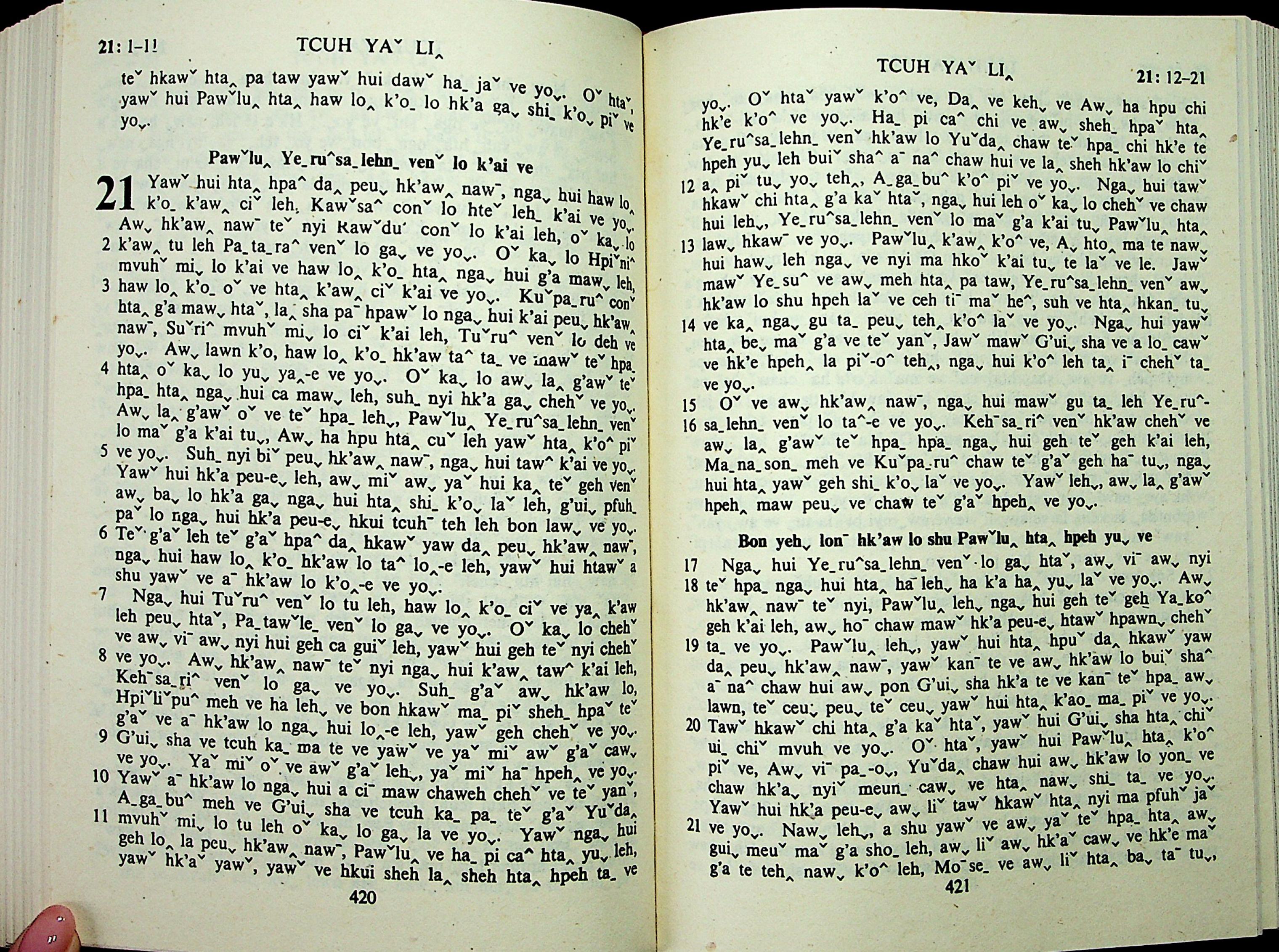 1985年拉祜文新約全書 使徒行傳 21 章 1 節到 21 章 21 節