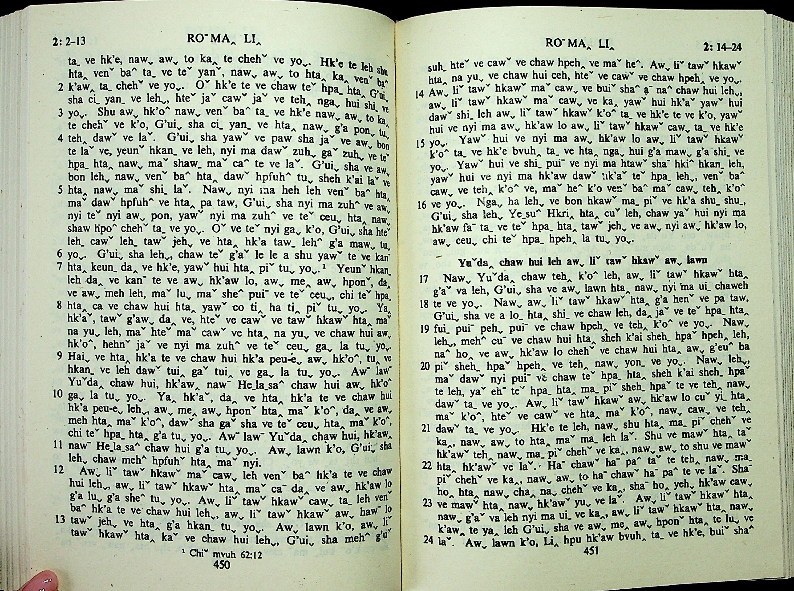 1985年拉祜文新約全書 羅馬書 2 章 2 節到 2 章 24 節