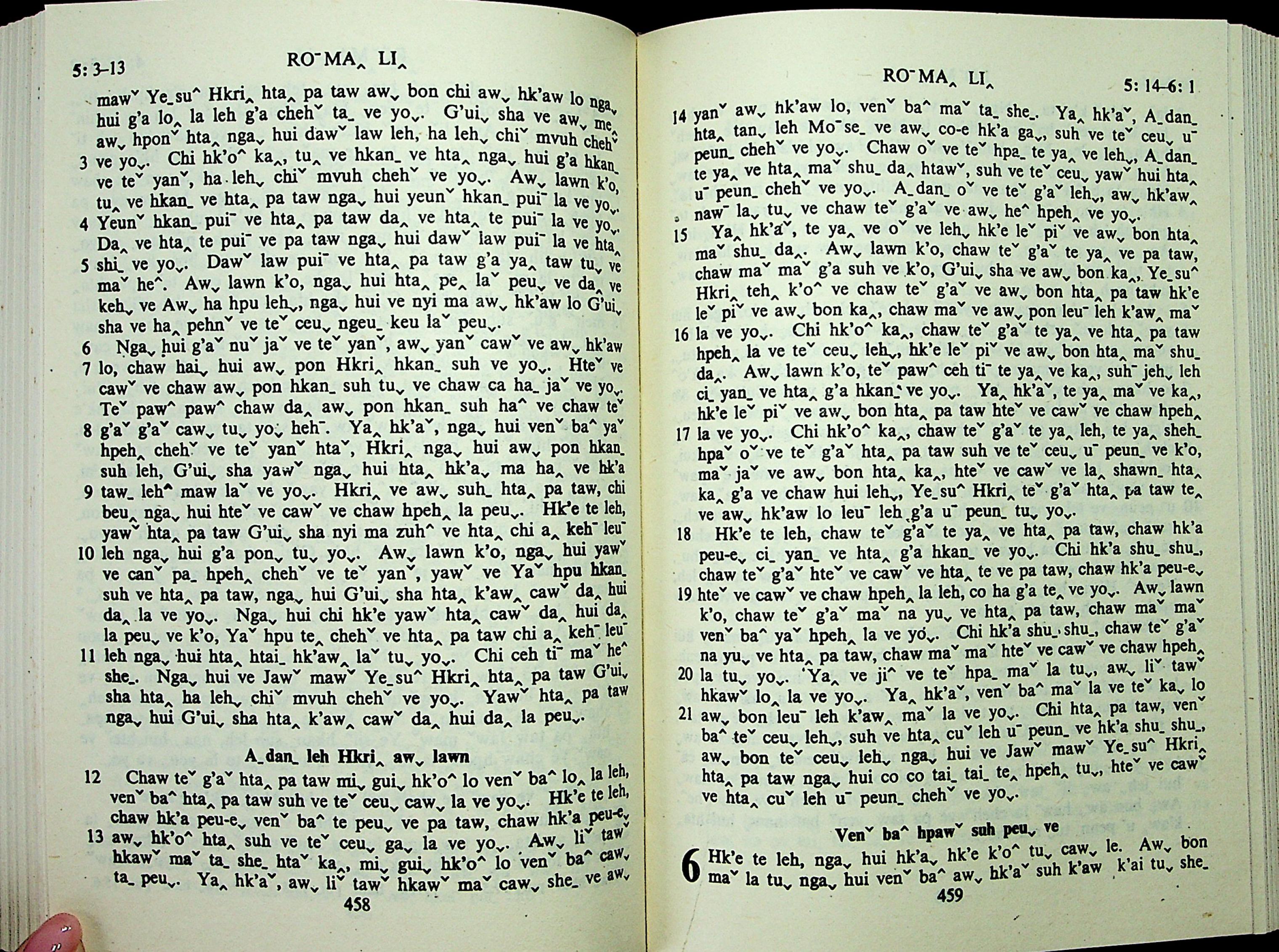 1985年拉祜文新約全書 羅馬書 5 章 3 節到 6 章 1 節