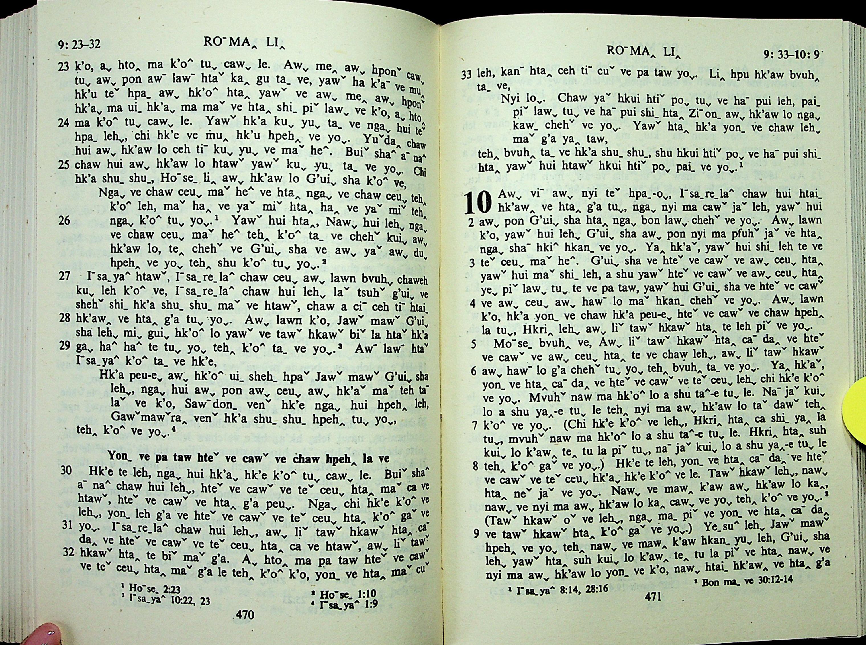 1985年拉祜文新約全書 羅馬書 9 章 23 節到 10 章 9 節