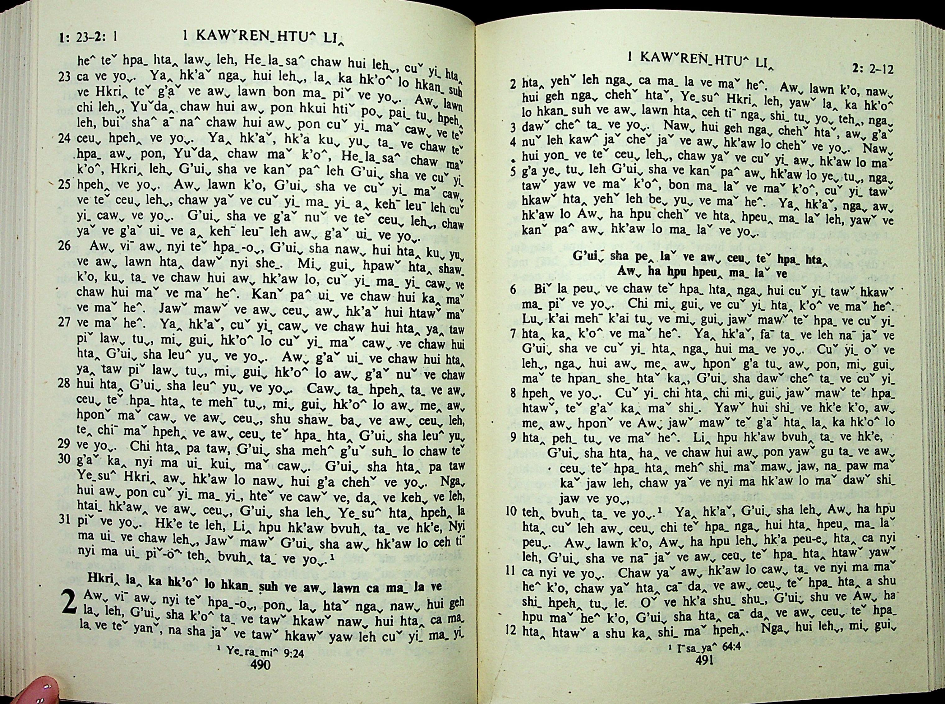 1985年拉祜文新約全書 哥林多前書 1 章 23 節到 2 章 12 節