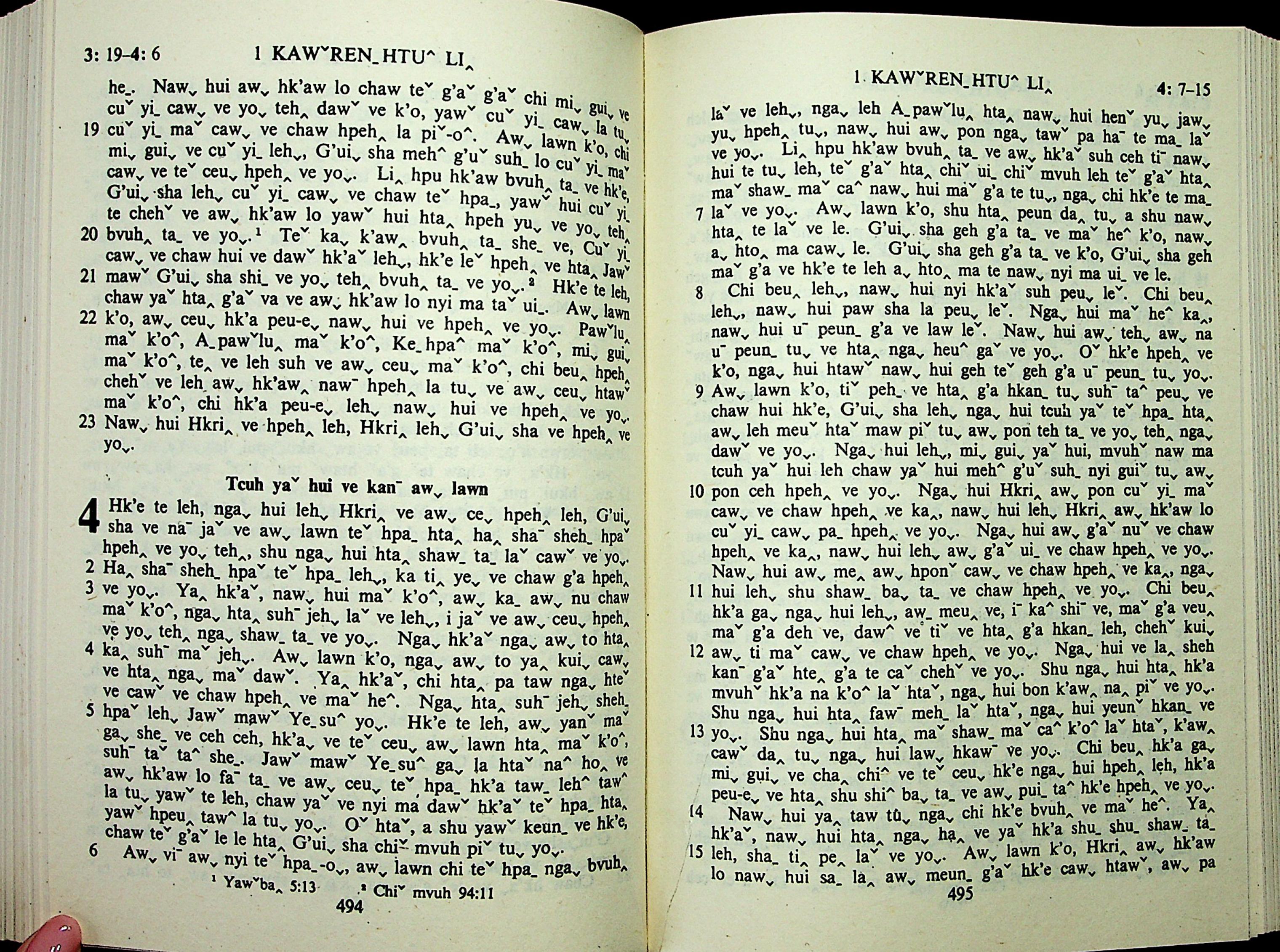 1985年拉祜文新約全書 哥林多前書 3 章 19 節到 4 章 15 節