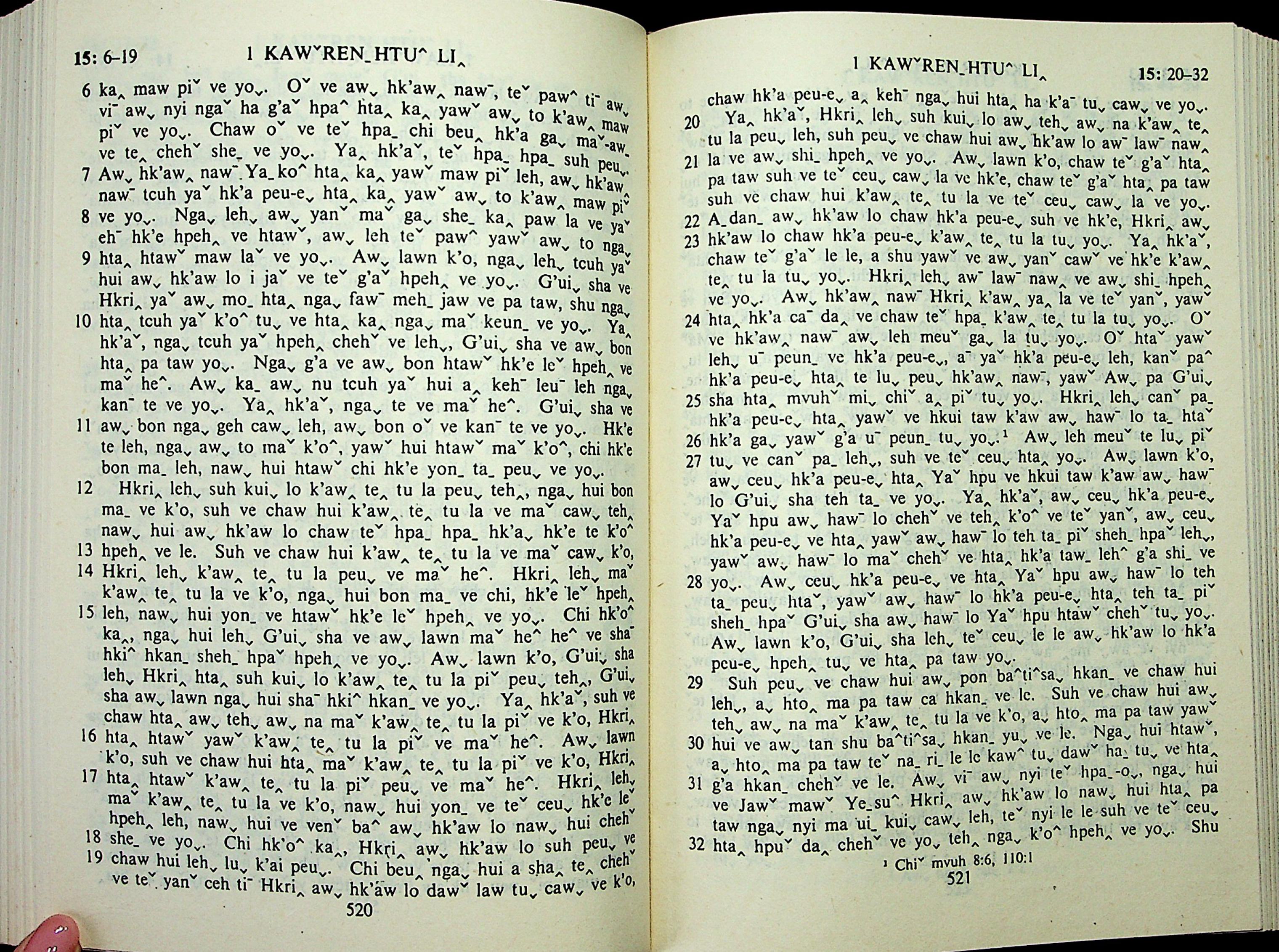 1985年拉祜文新約全書 哥林多前書 15 章 6 節到 15 章 32 節
