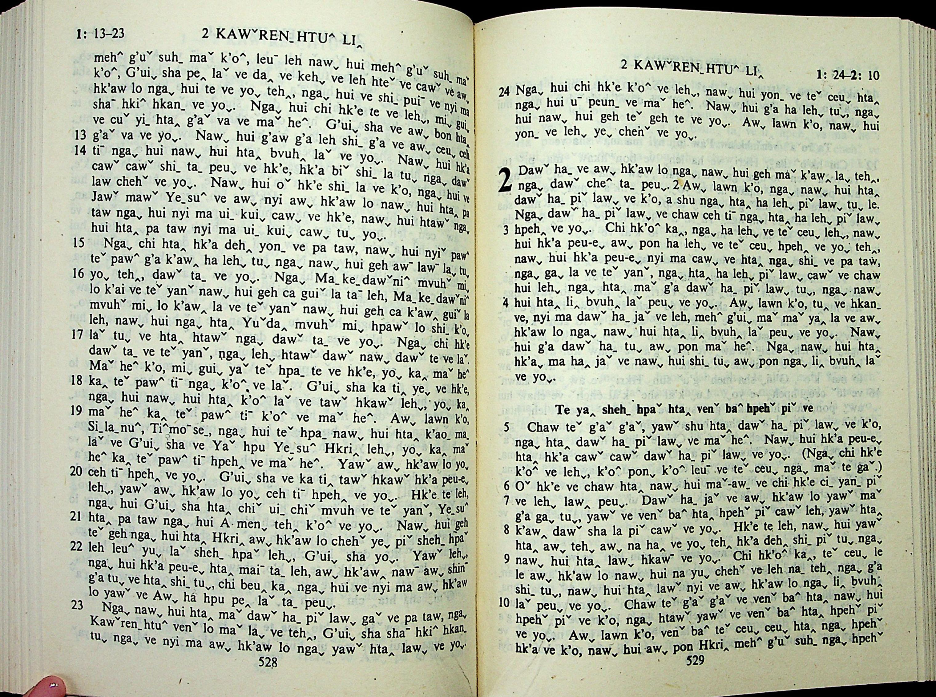 1985年拉祜文新約全書 哥林多後書 1 章 13 節到 2 章 10 節