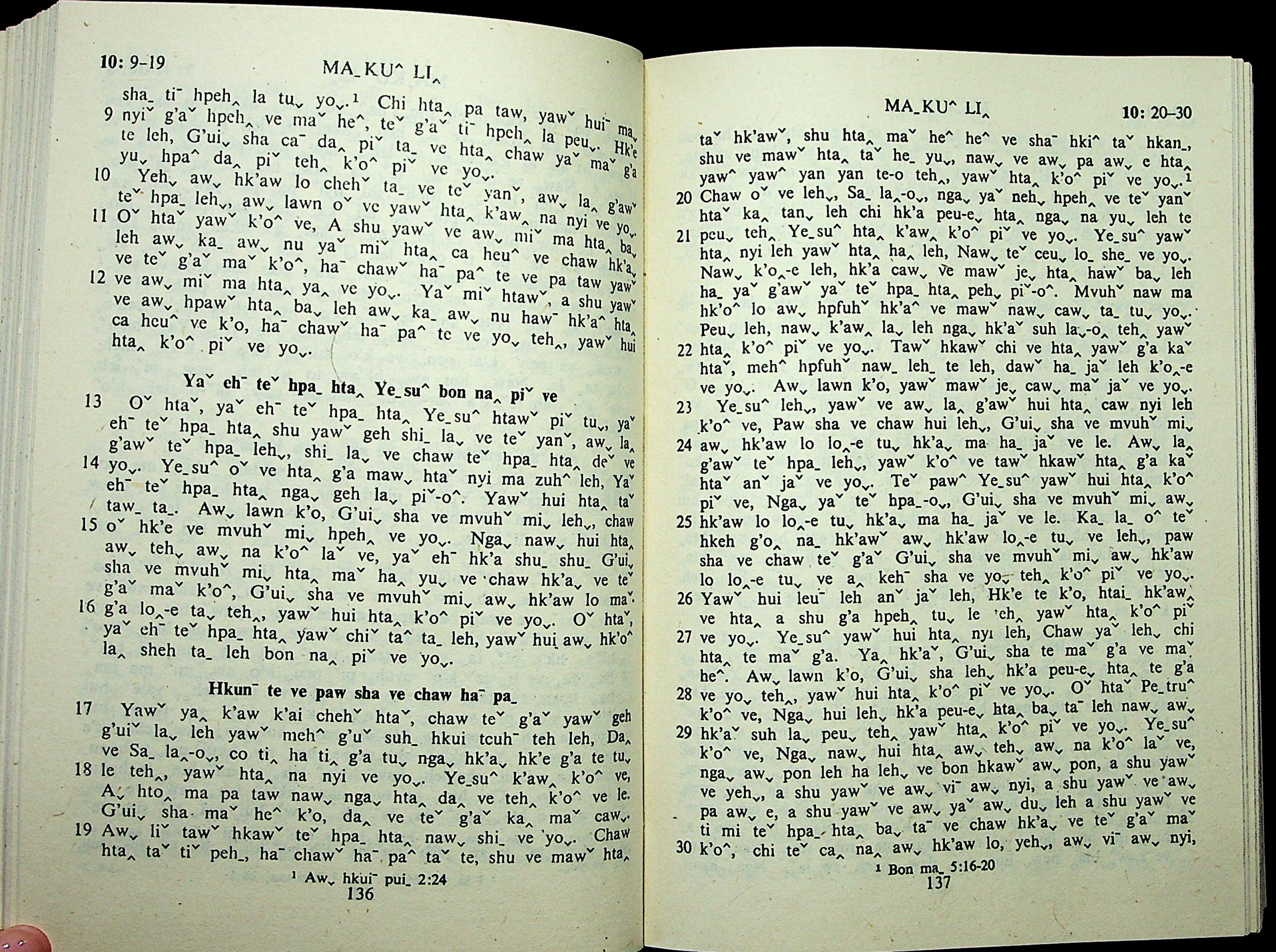 1985年拉祜文新約全書 馬可福音 10 章 9 節到 10 章 30 節