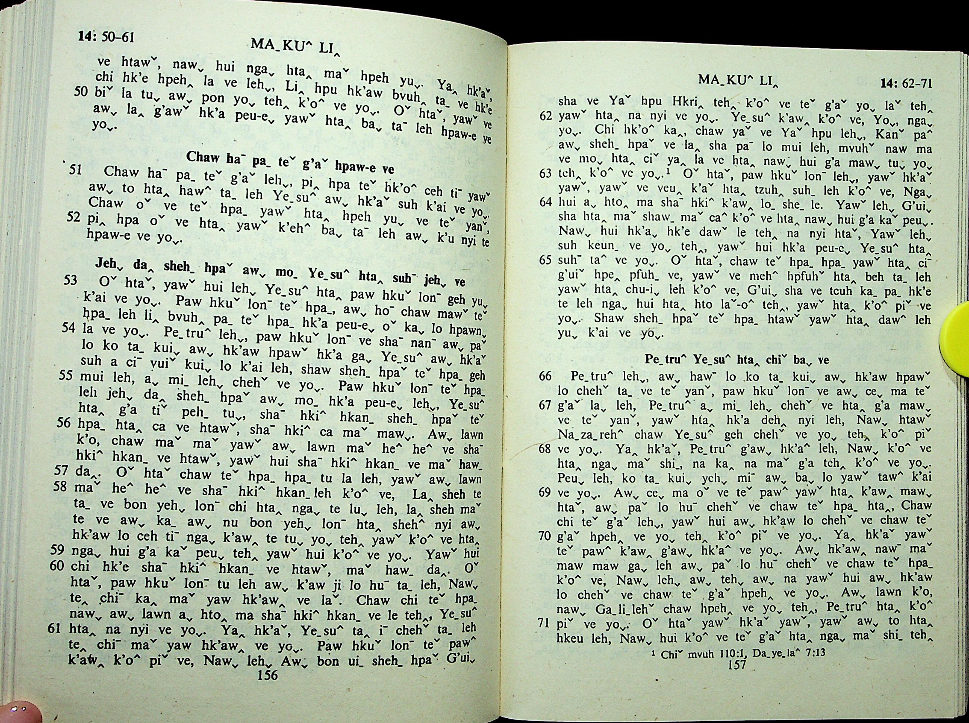 1985年拉祜文新約全書 馬可福音 14 章 50 節到 14 章 71 節