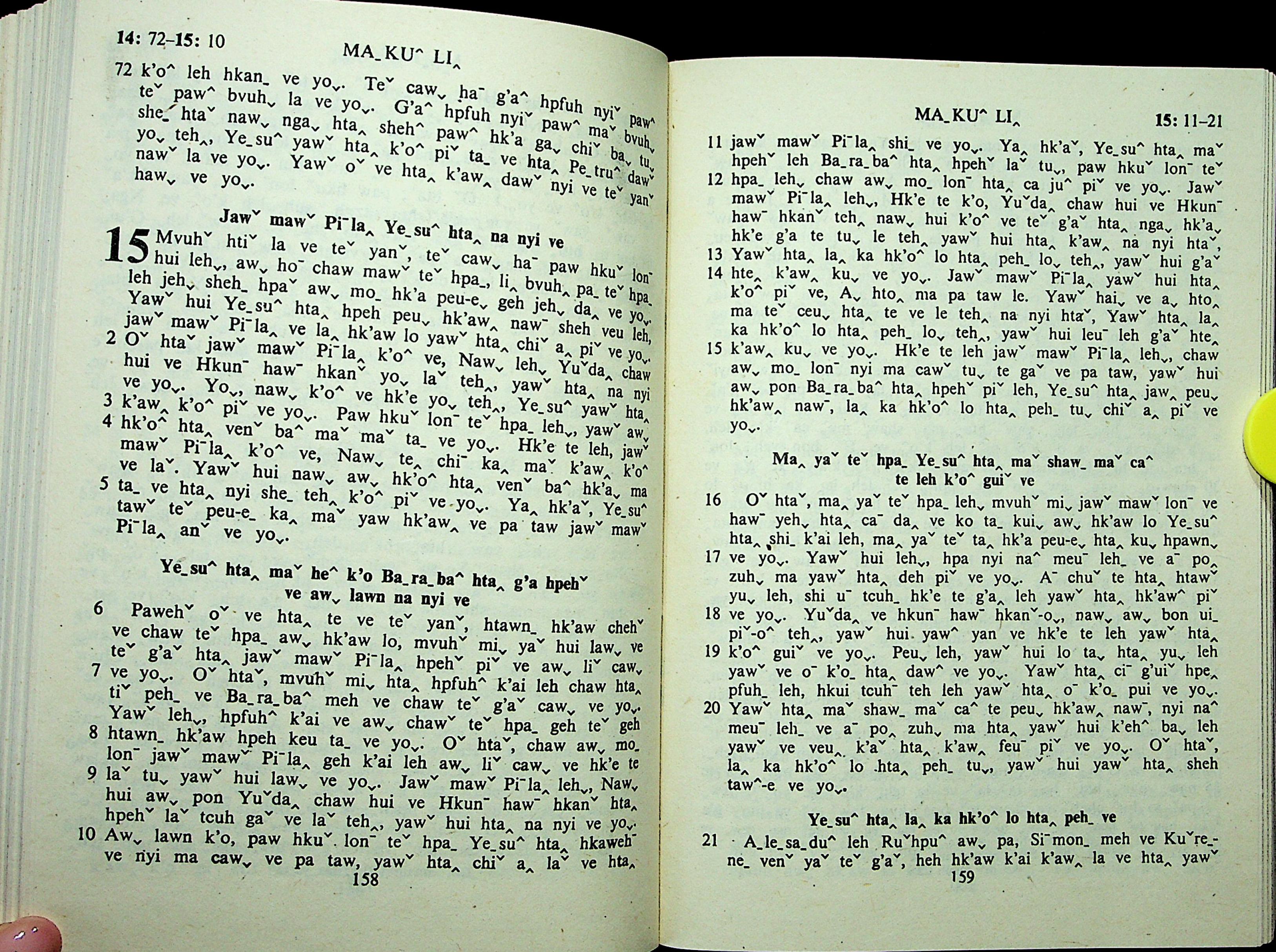 1985年拉祜文新約全書 馬可福音 14 章 72 節到 15 章 21 節