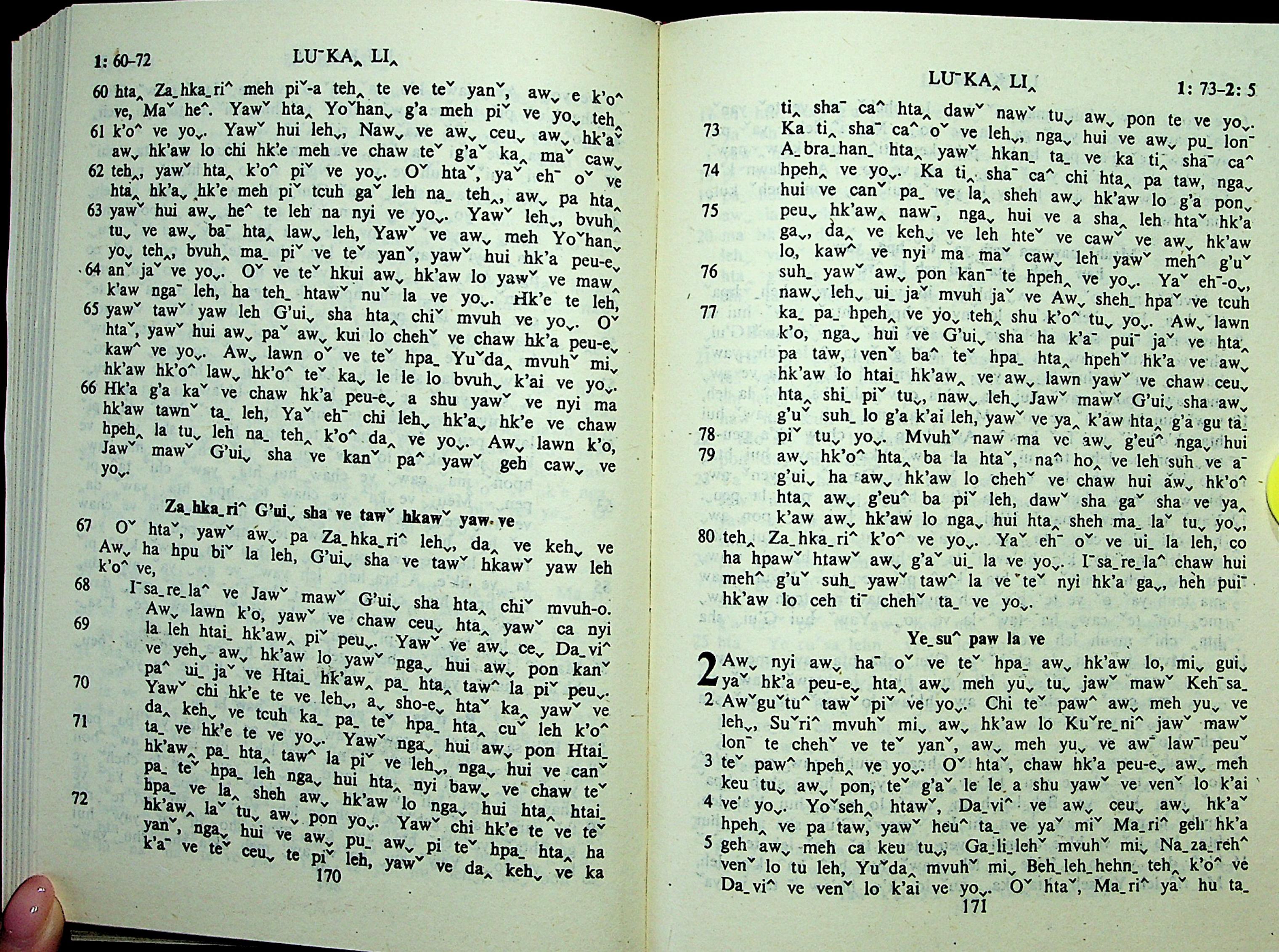 1985年拉祜文新約全書 路加福音 1 章 60 節到 2 章 5 節