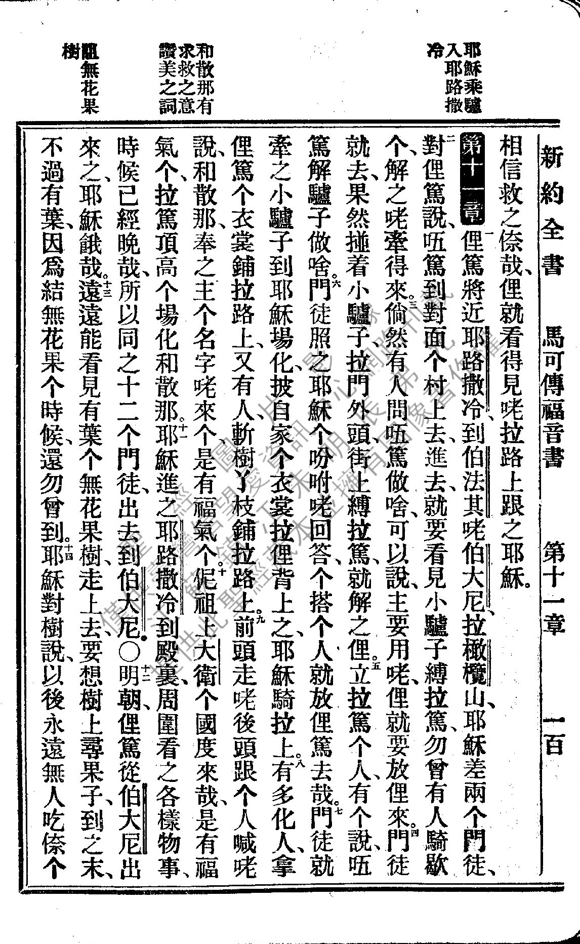 1922年新約全書 馬可福音 11 章 1 節到 11 章 14 節