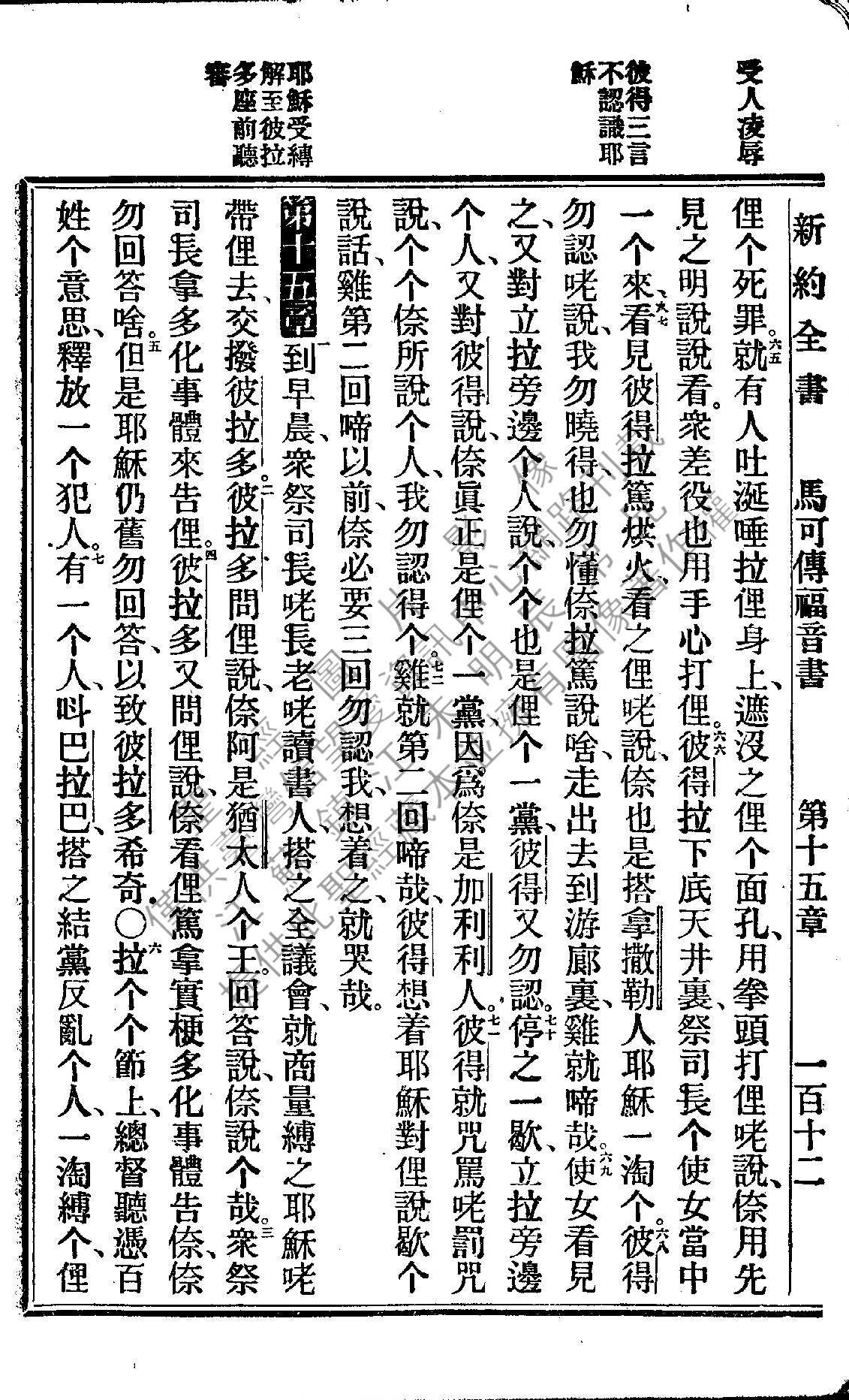 1922年新約全書 馬可福音 14 章 65 節到 15 章 7 節