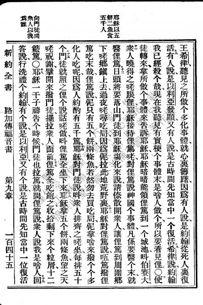1922年新約全書 路加福音 9 章 8 節到 9 章 19 節