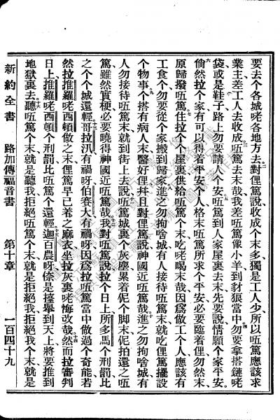 1922年新約全書 路加福音 10 章 2 節到 10 章 16 節