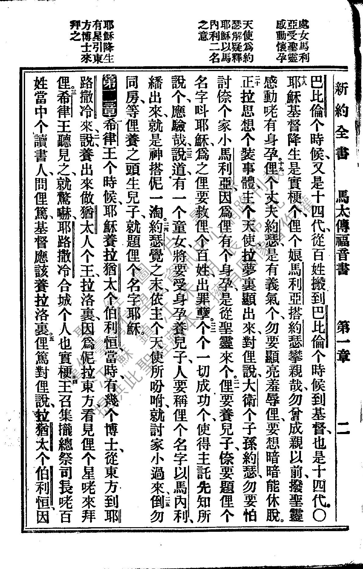 1922年新約全書 馬太福音 1 章 18 節到 2 章 5 節