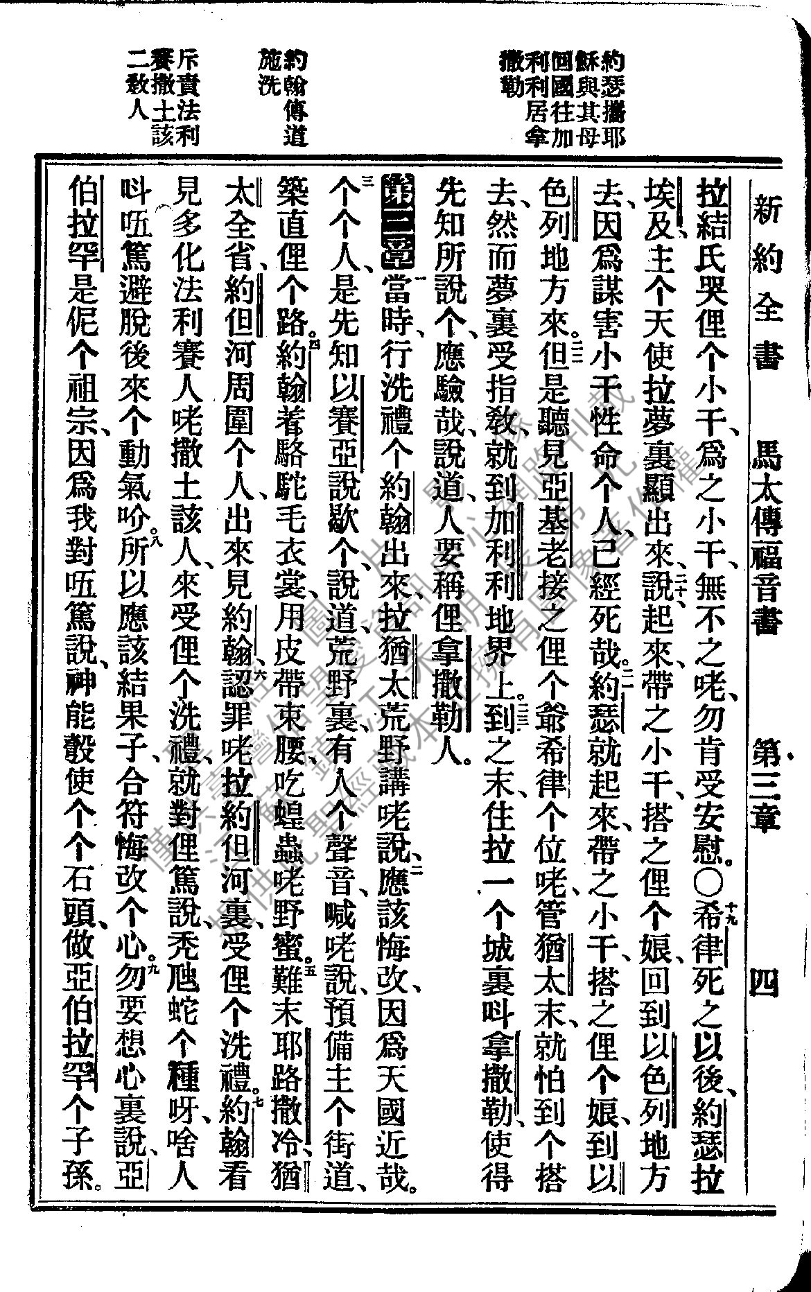 1922年新約全書 馬太福音 2 章 19 節到 3 章 9 節
