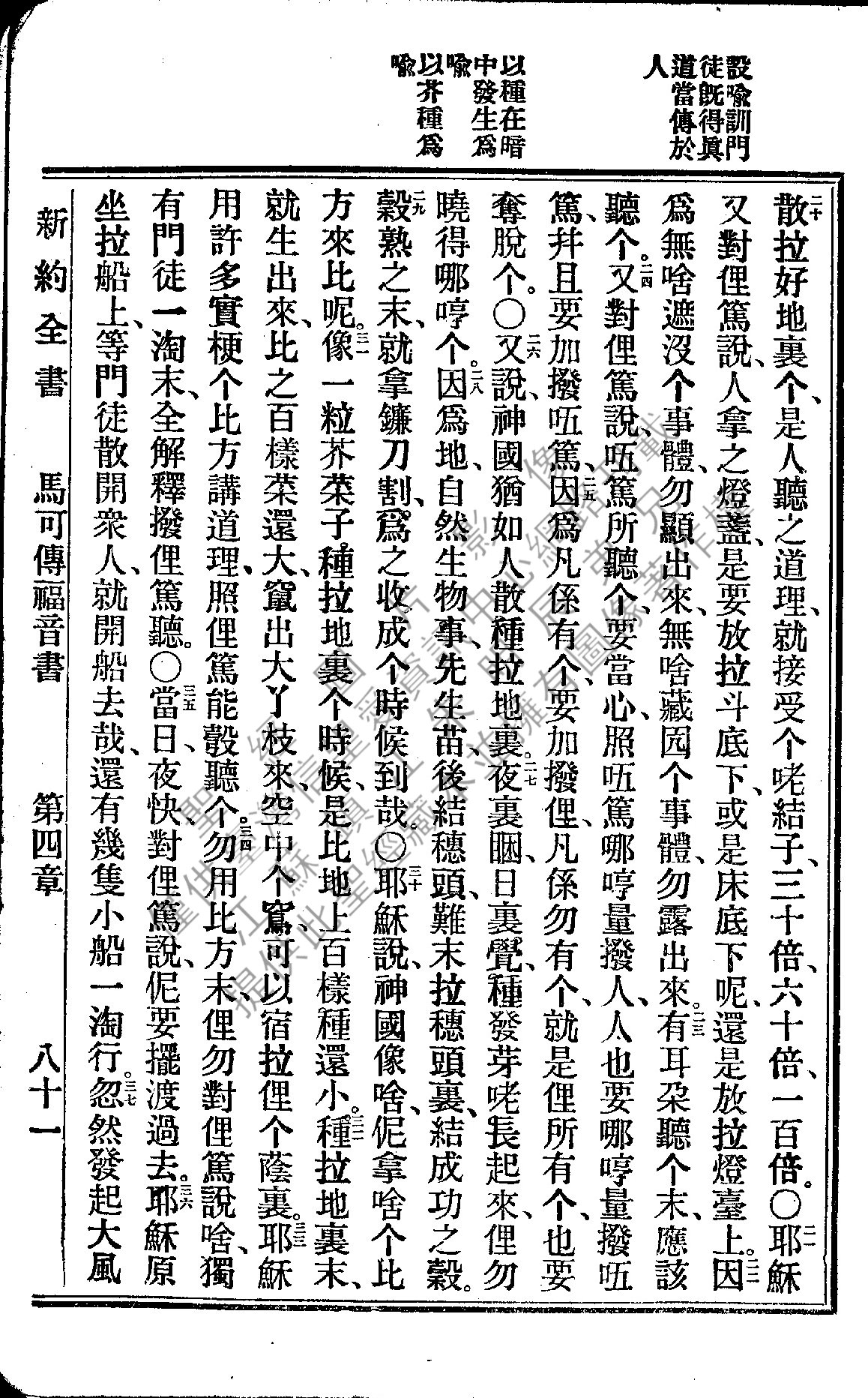 1922年新約全書 馬可福音 4 章 20 節到 4 章 37 節