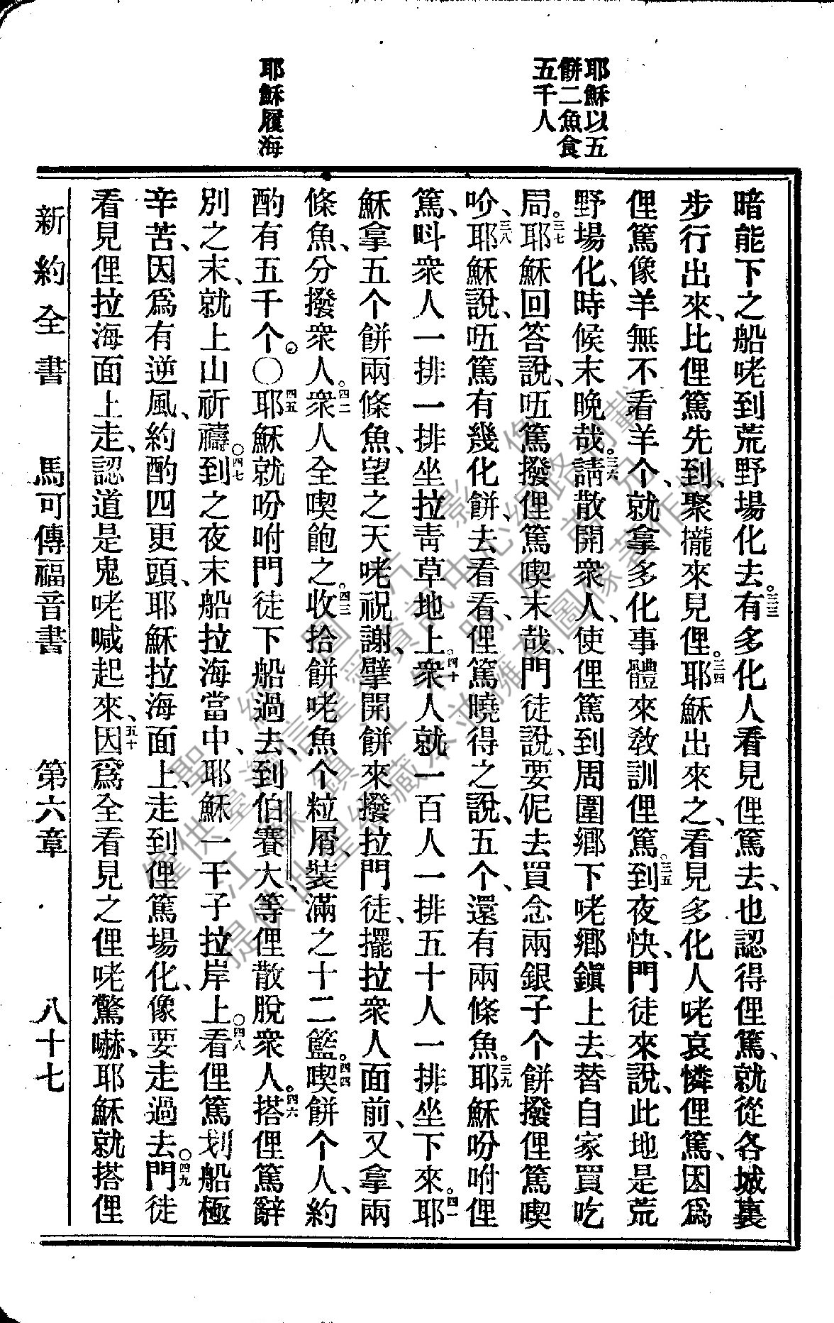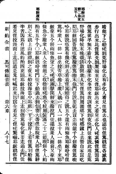 1922年新約全書 馬可福音 6 章 33 節到 6 章 50 節
