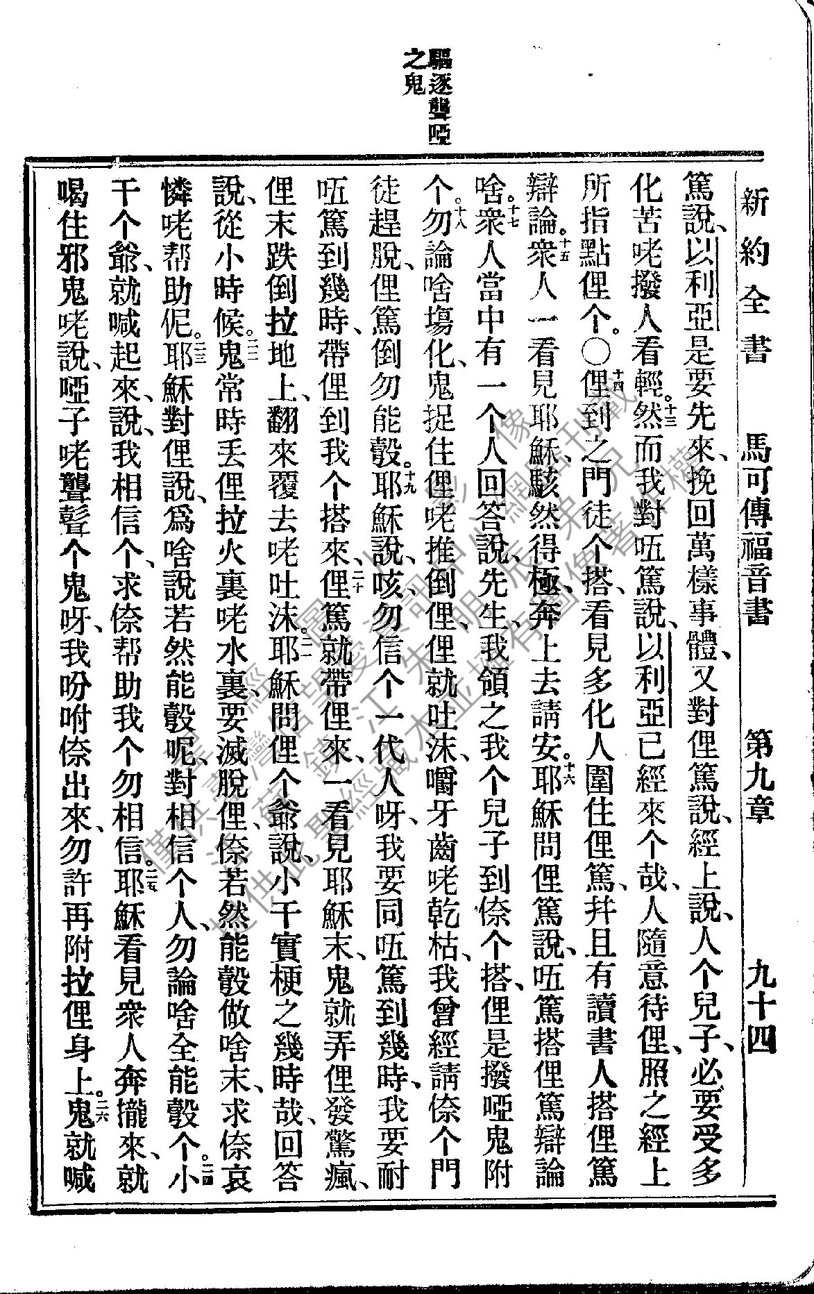1922年新約全書 馬可福音 9 章 13 節到 9 章 26 節